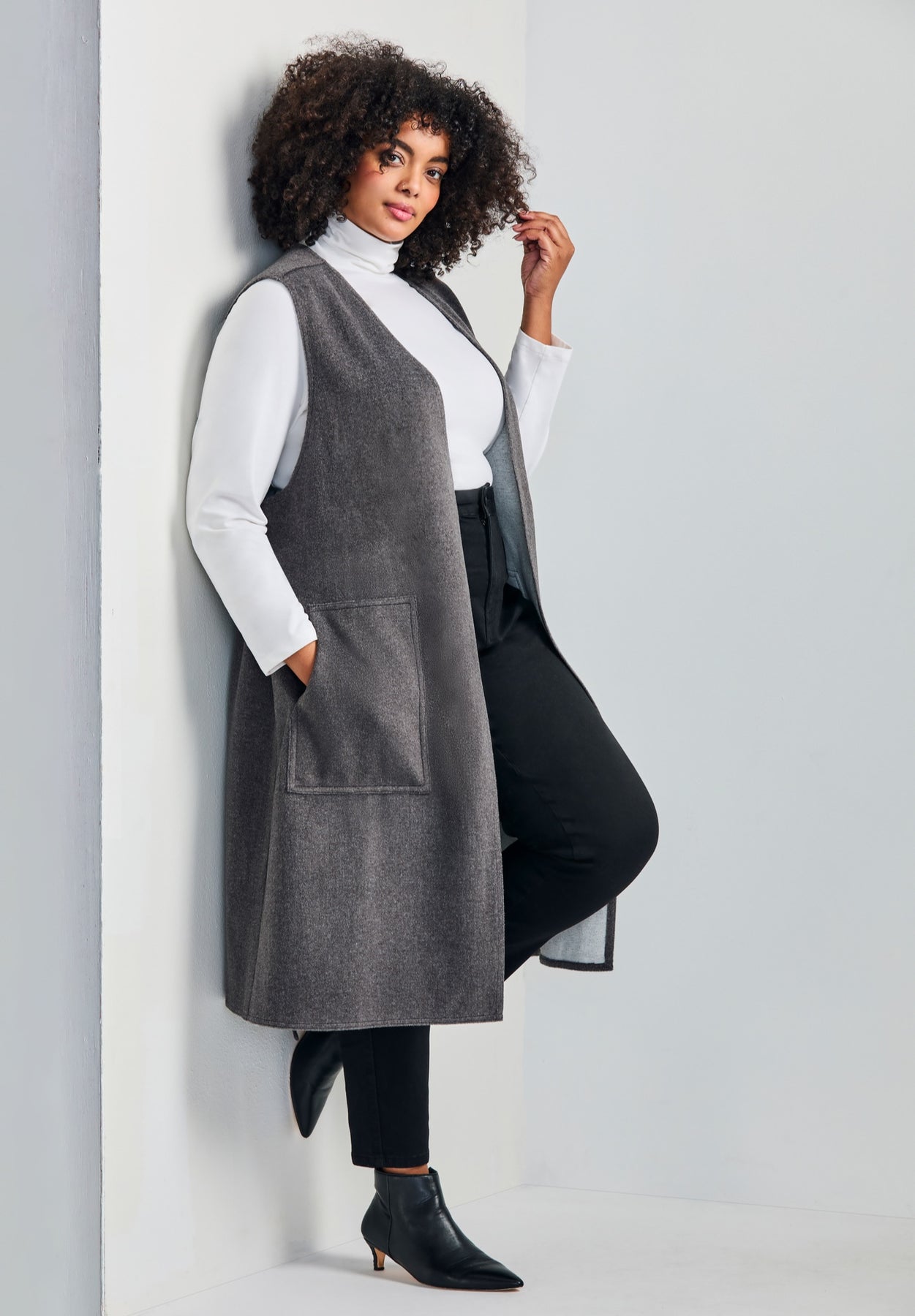 Introducing the Nova Longline Vest—your go-to layer for effortless style! This sleeveless wonder, complete with a self-tie belt and handy pockets, is perfect for adding that extra oomph to any outfit. The brushed fabrication makes it not only chic but also cozy and comfortable. Whether you're dressing it up or keeping it casual, the Nova Vest is sure to become your wardrobe's MVP!