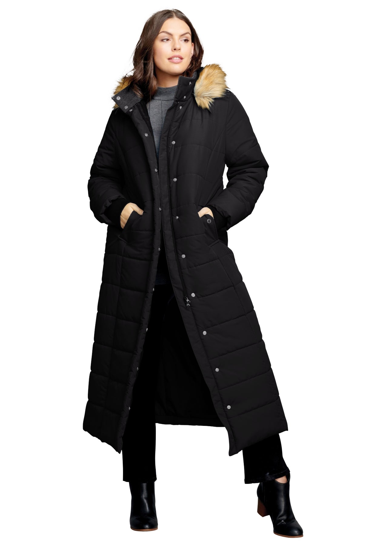 Plus Size Maxi Length Puffer Coat