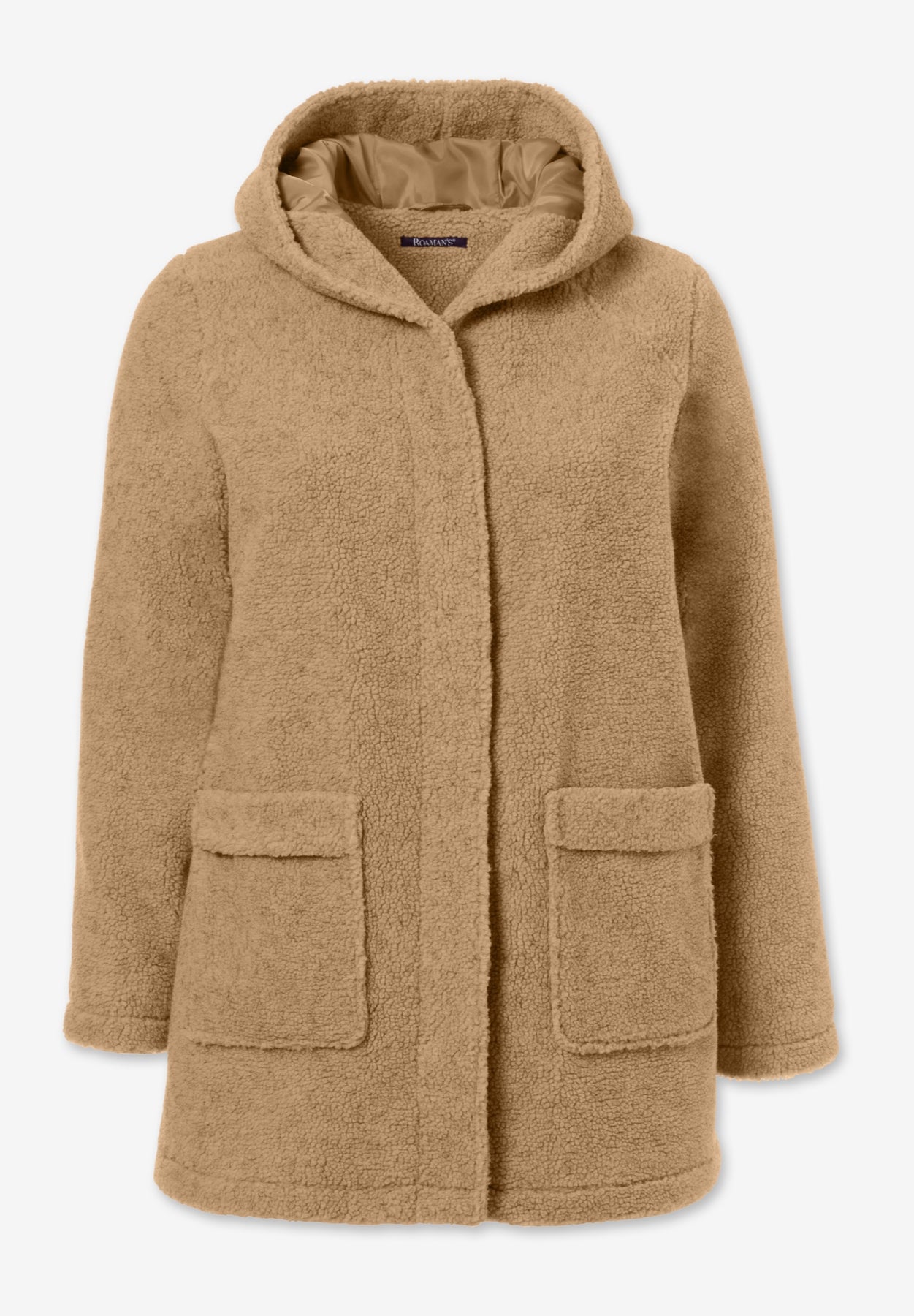 Plus Size Hooded Teddy Fleece Coat | Roaman&