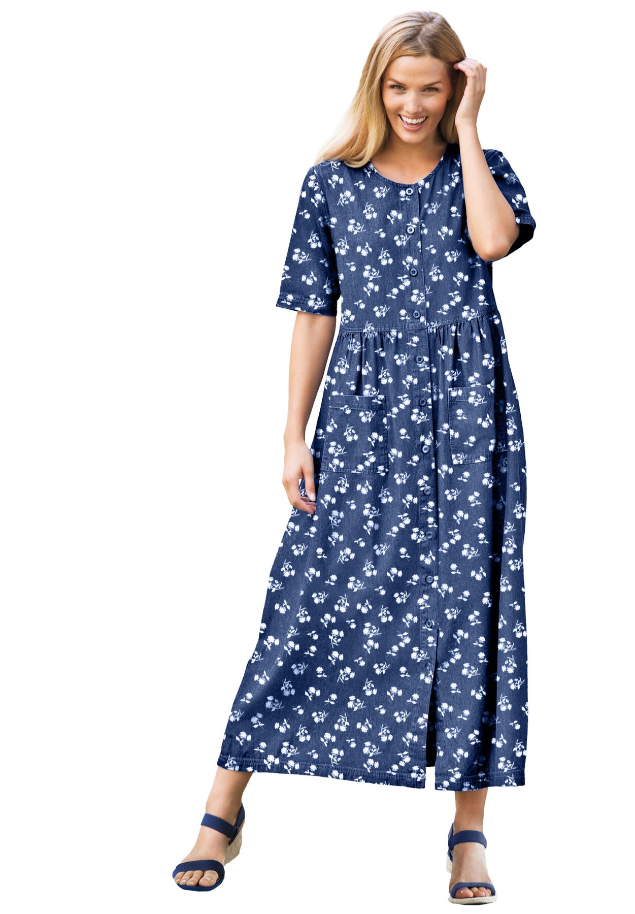 - Effortless style for any season with our Short-Sleeve Denim Dress.