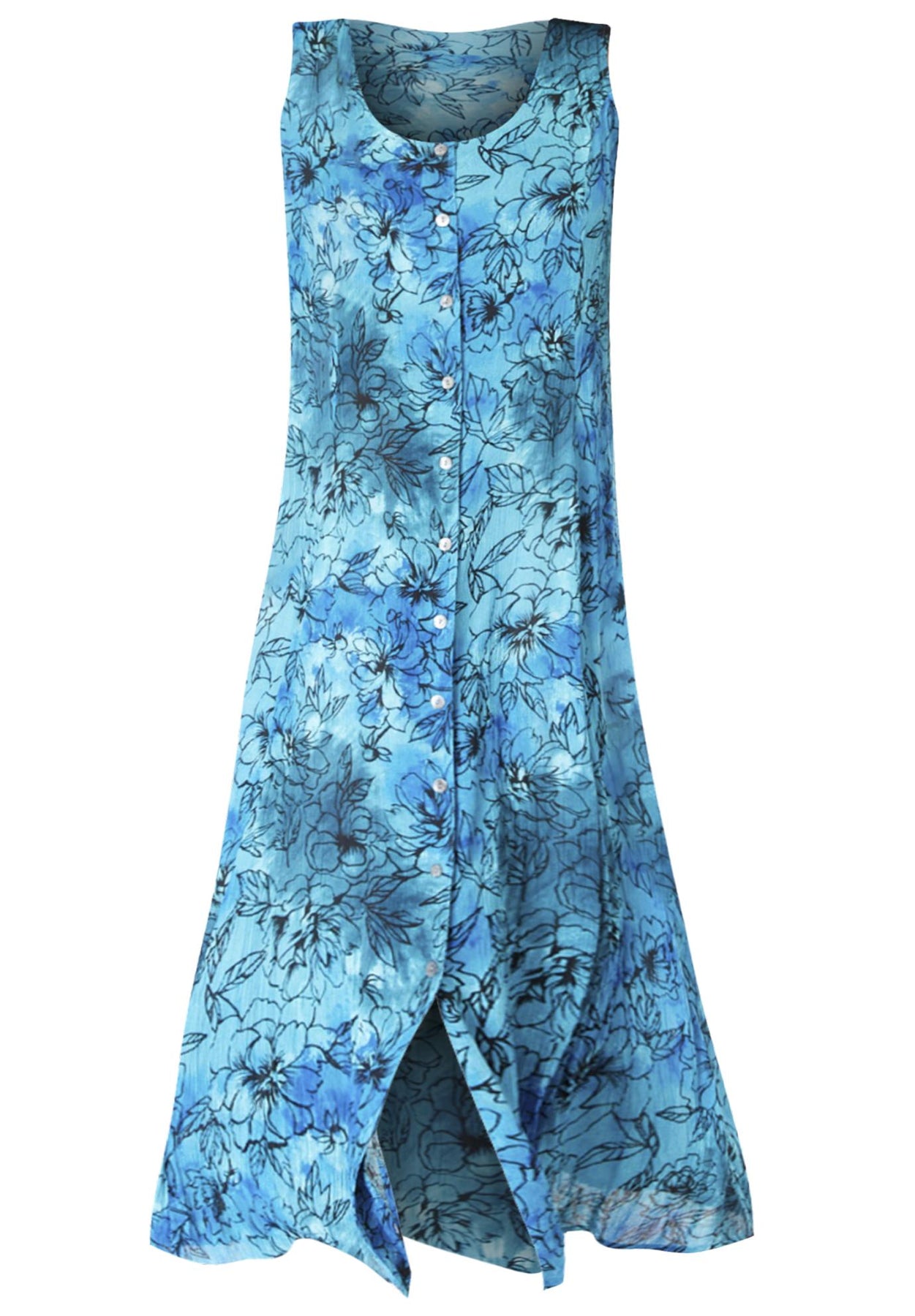 Plus Size Sleveless Hand-Crinkled Button-Front A-Line Maxi – Curvy Breezy Dress