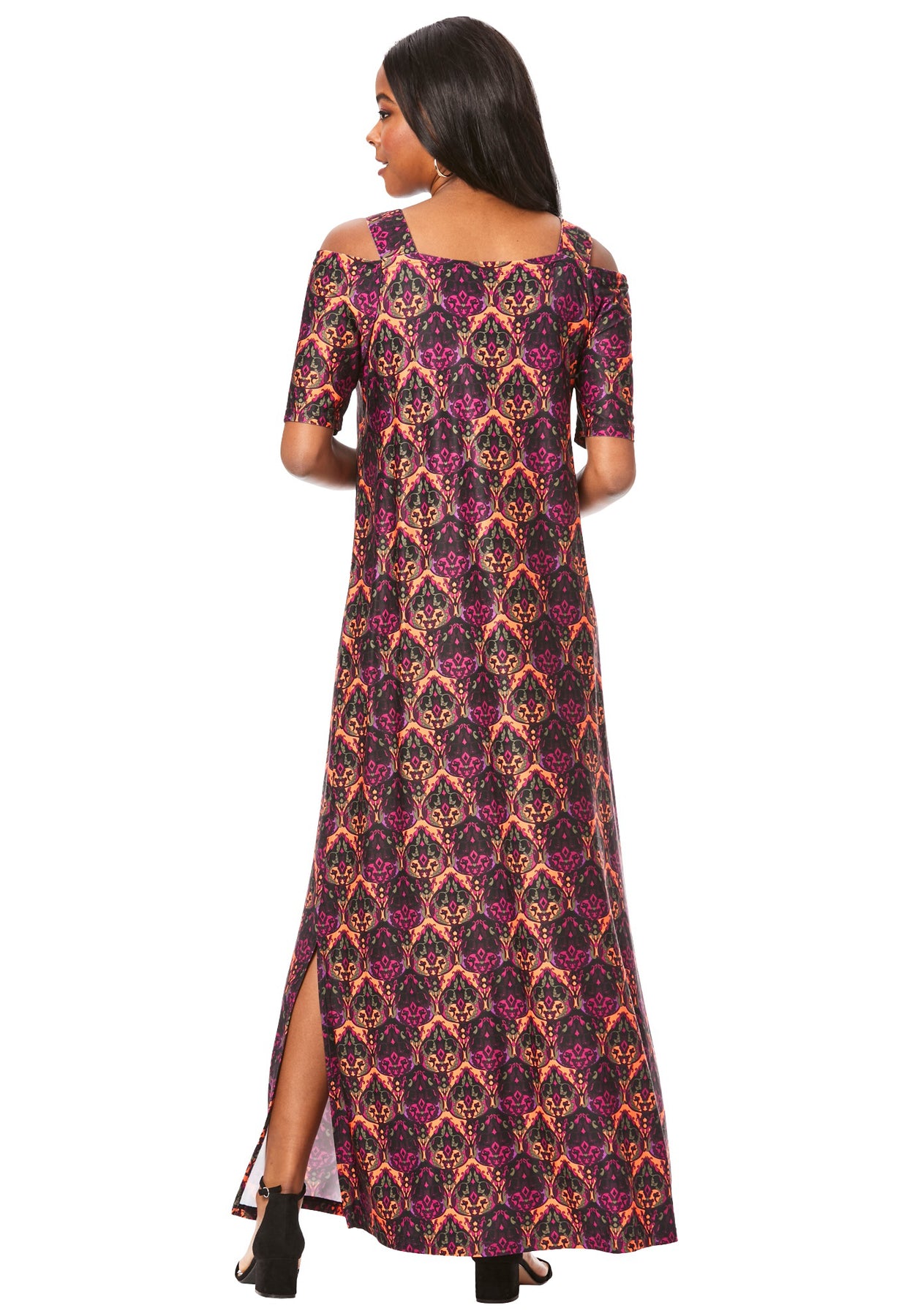 If you only pack one evening dress on your next vacation, make it this one. A-line silhouette with side slit. Pullover style.