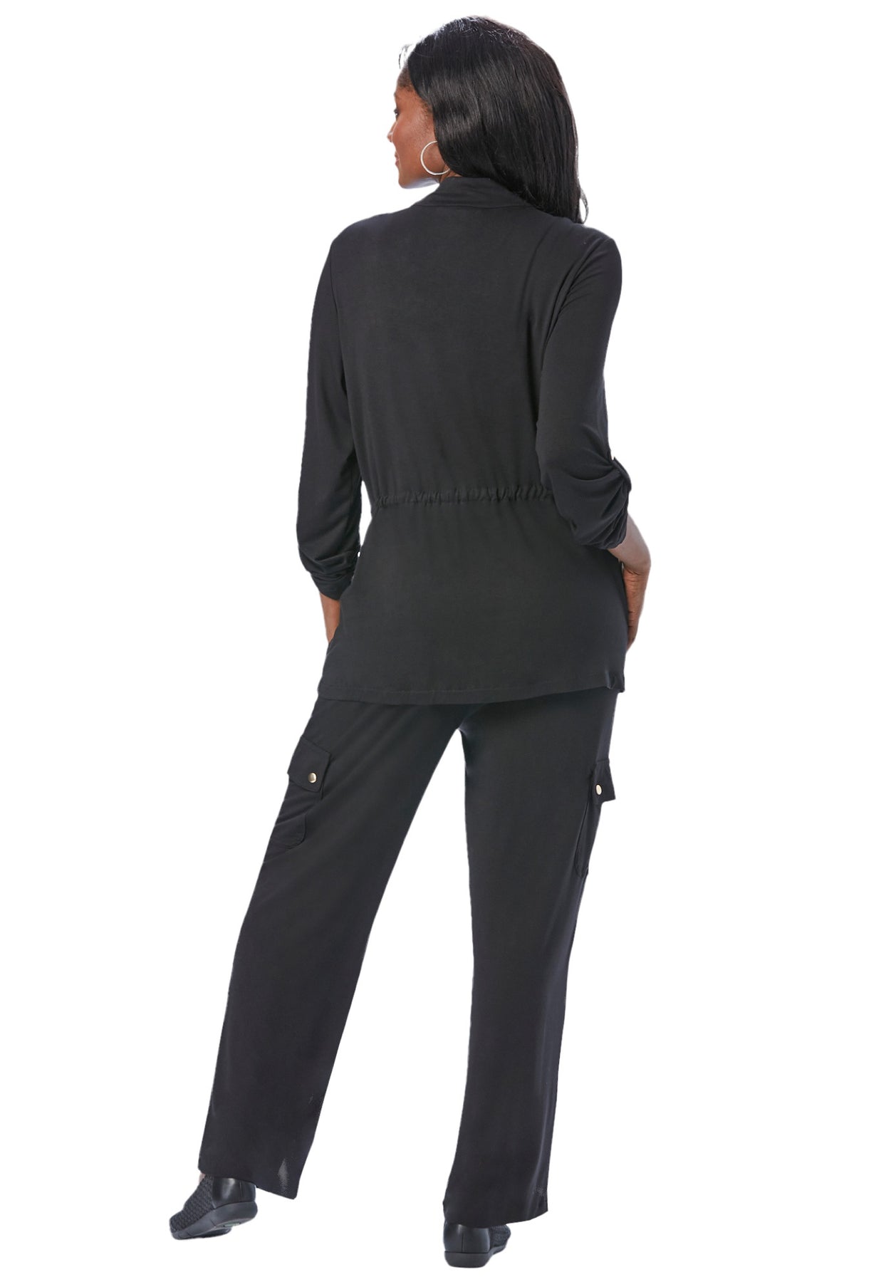 Knitwear gets a trendy cargo upgrade with this two-piece set. It’s subtly structured for a classic look, while cargo pocket details keep it casual. The stretch jersey knit drapes beautifully, keeps its smooth shape wash after wash, and packs without wrinkling. Layer in a tee for a pop of color, or button the top for a tailored, monochrome look.