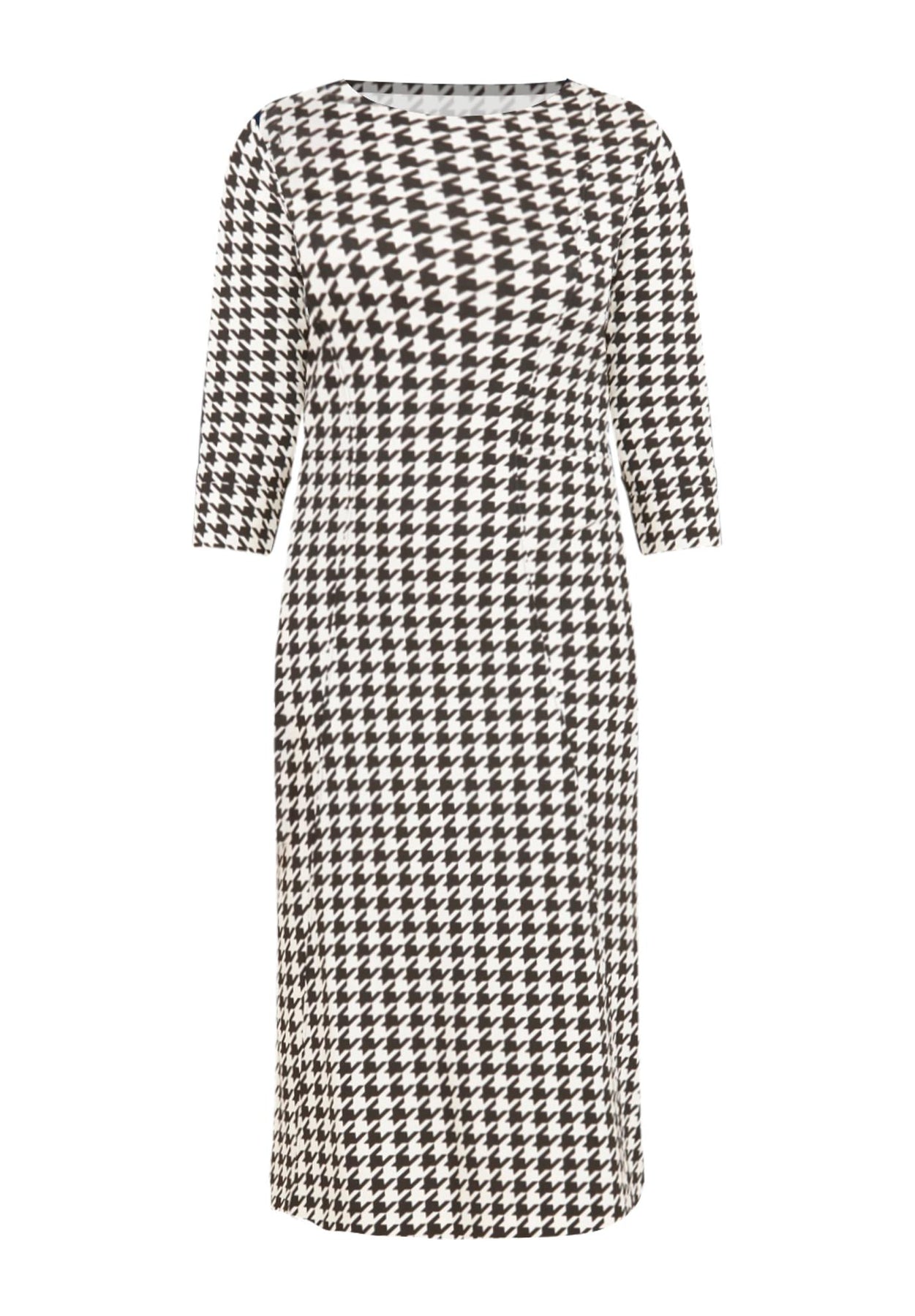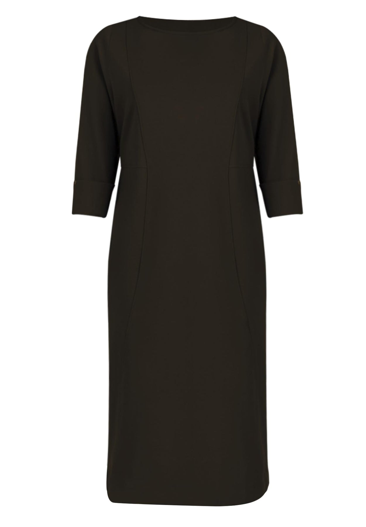 FIT: Relaxed and easy silhouette with boat neckline, princess seams and seamed waist. Cuffed sleeves with button detail. Back zip closure.