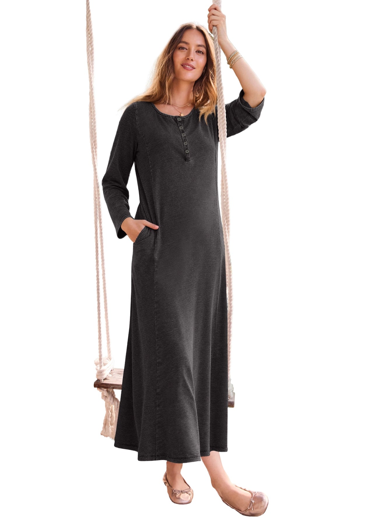 Fall in love with the plus size women’s Henley Tee Maxi Dress, your new must-have for laid-back days and easy style. Designed in a soft knit that’s washed for extra comfort, this dress delivers the look of denim with the feel of your favorite tee. Perfect for weekend outings, relaxed evenings, or everyday wear!