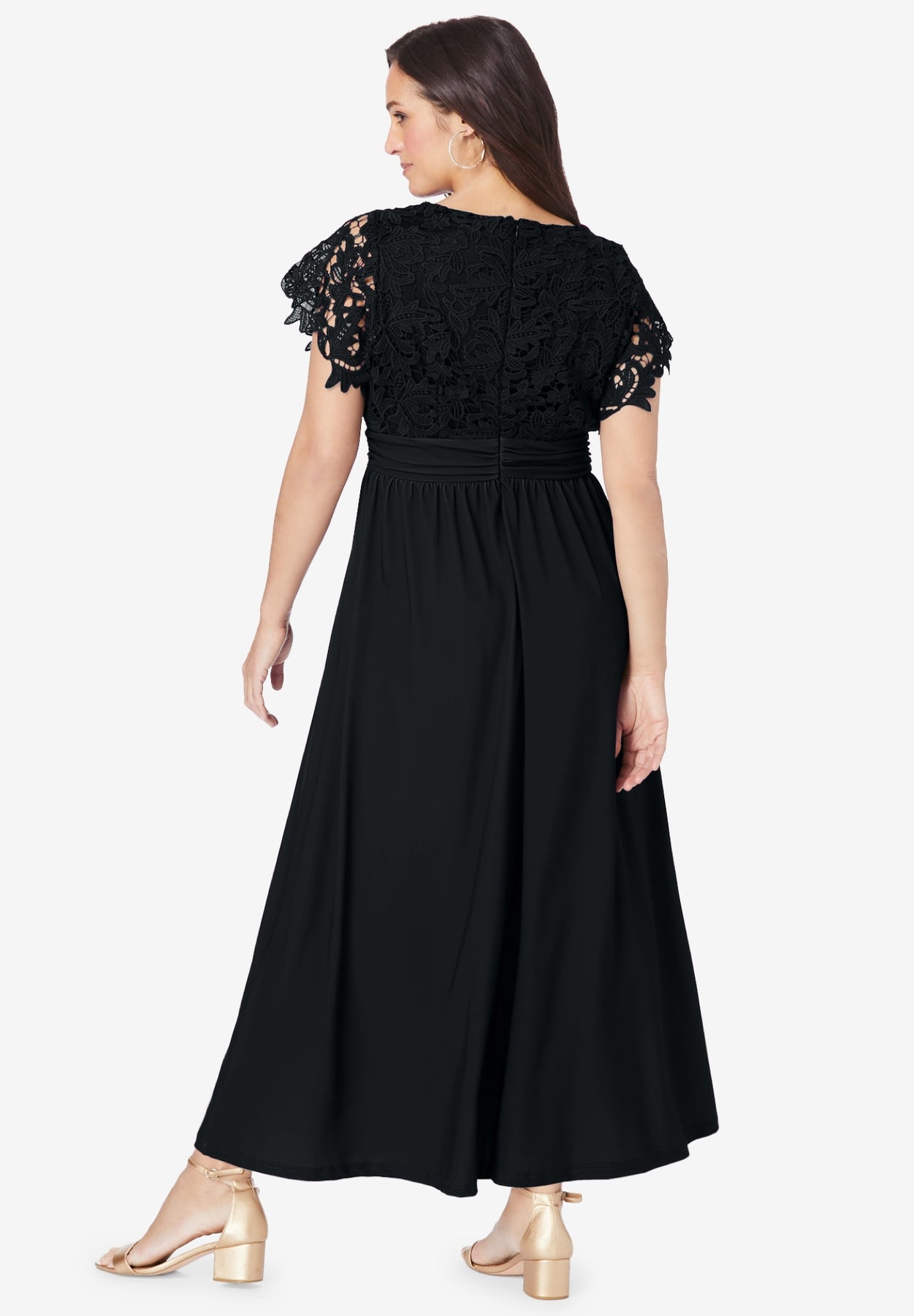 Beautiful illusion sweetheart neckline that elevates this lace maxi dress for special occasions. Ruching at waistband keeps the fit flattering and comfortable.