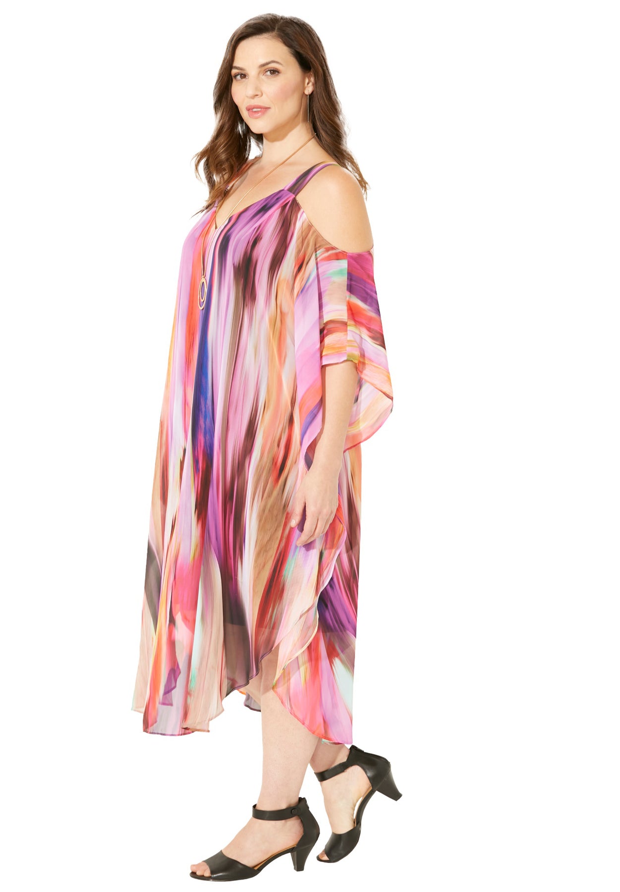 Open-Shoulder Chiffon Dress