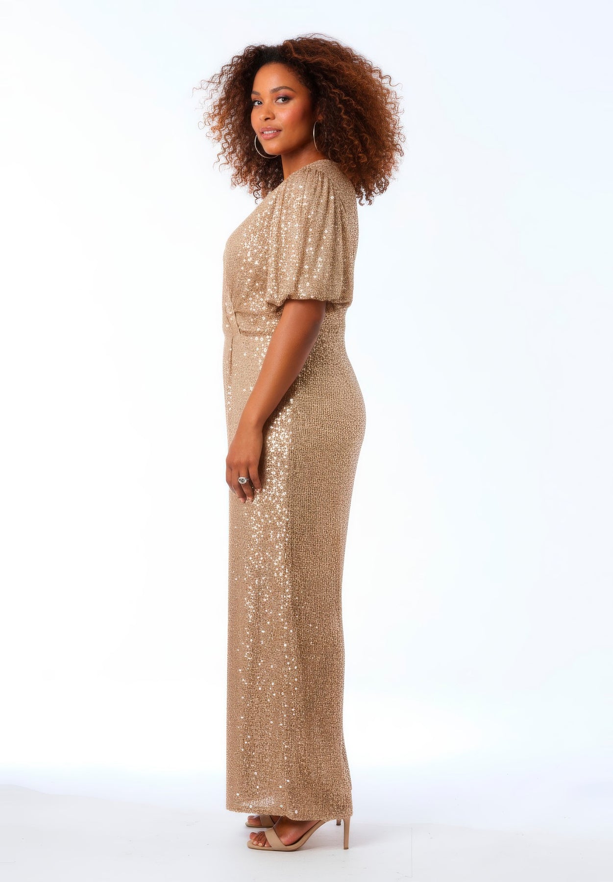 Nada Sequin Puff Sleeve Jumpsuit