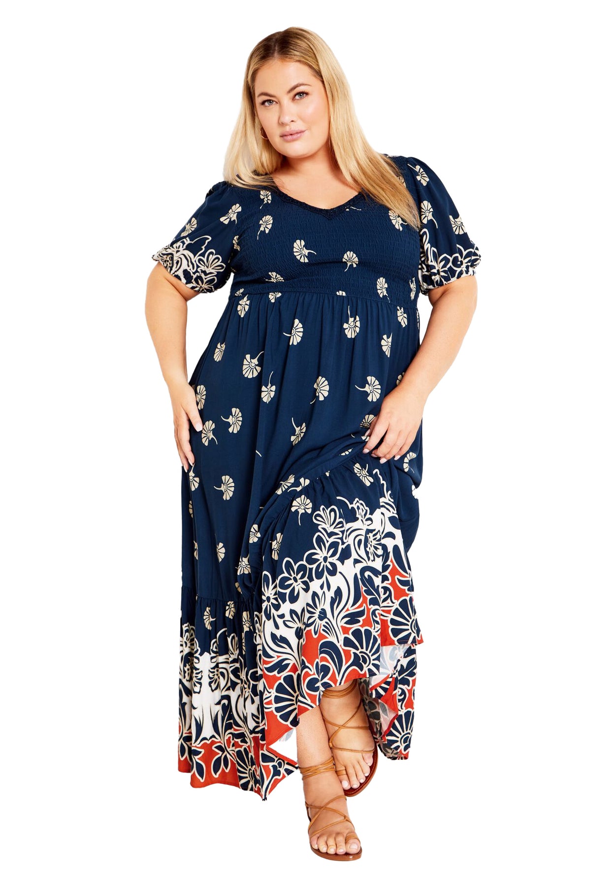 Chase the sun in our oh-so curve-loving Eve Border Dress, combining a breezy fabrication with pretty print to catch eyes from across the street. Whether you're headed to lunch or a casual city stroll, this dress can do it all.