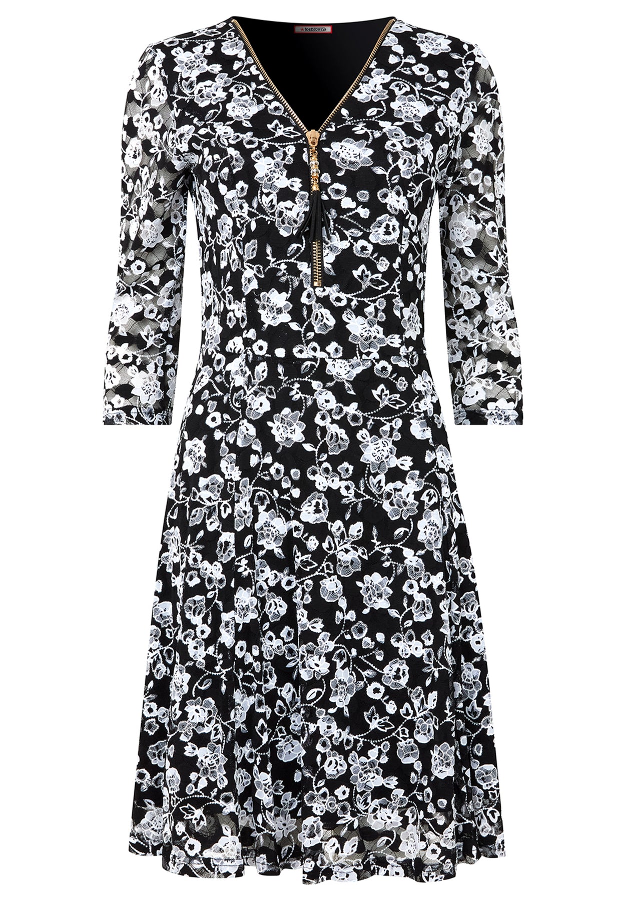 Lovely lace gets a sporty upgrade with a zipper V-neckline on this Joe Browns plus size women’s midi dress! Style it with your favorite booties and a leather jacket for an eye-catching autumn outfit.