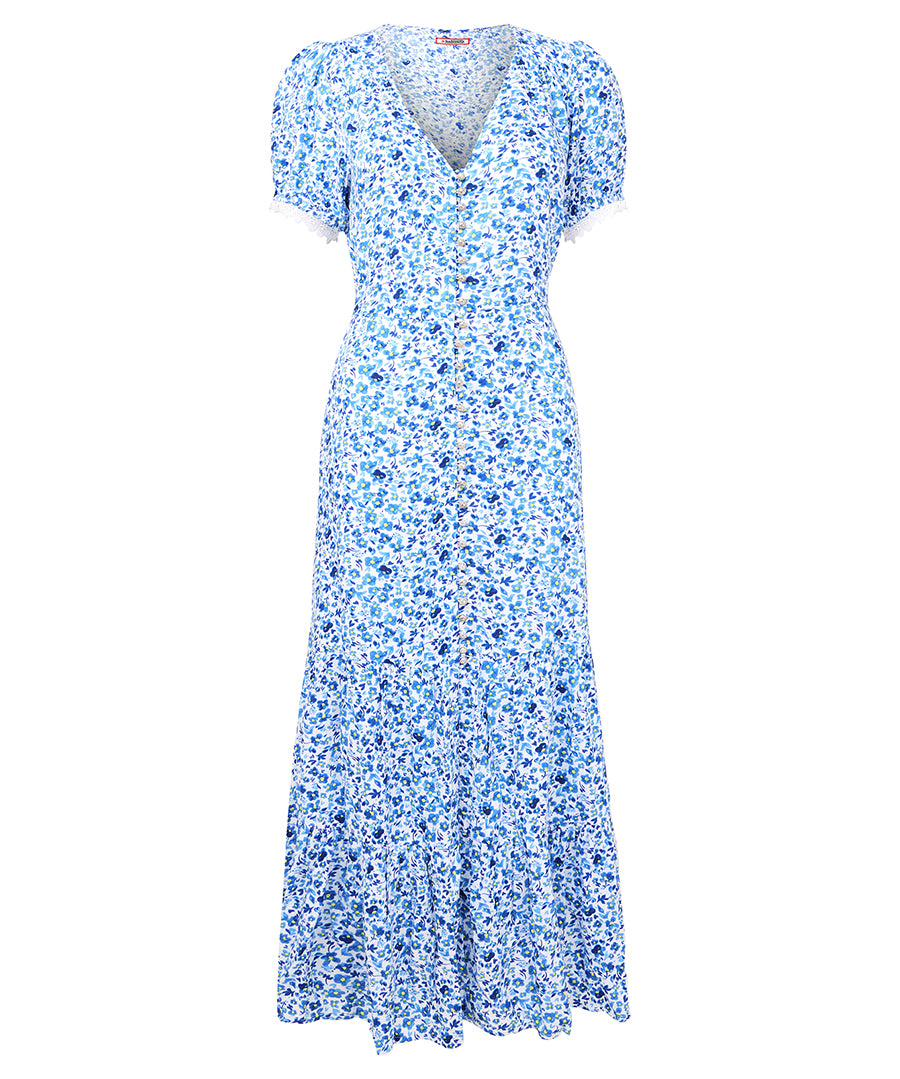 We’re obsessed with every detail of this dreamy floral dress. From the vintage-inspired frills and puff sleeves to the delicate button-front design, it’s made for making an entrance.
