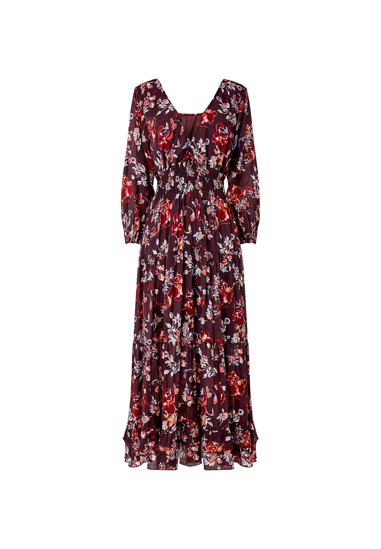 This is the floral dress that'll bring warmth to your seasonal wardrobe. It's all thanks to the deep eggplant color, which has us dreaming of mulled wine and snug winter fires. Elasticated at the waist for ultimate comfort, it offers the most flattering fit so you can wear it with total confidence.