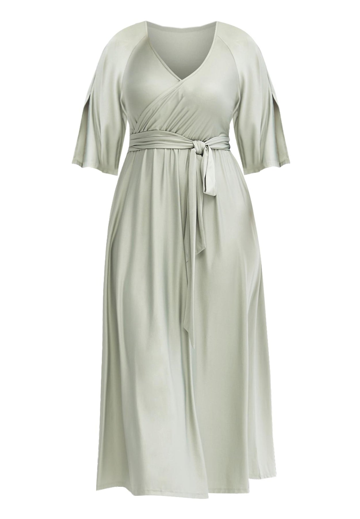 Knit Midi Dress With Surplice Neckline & Waist Tie