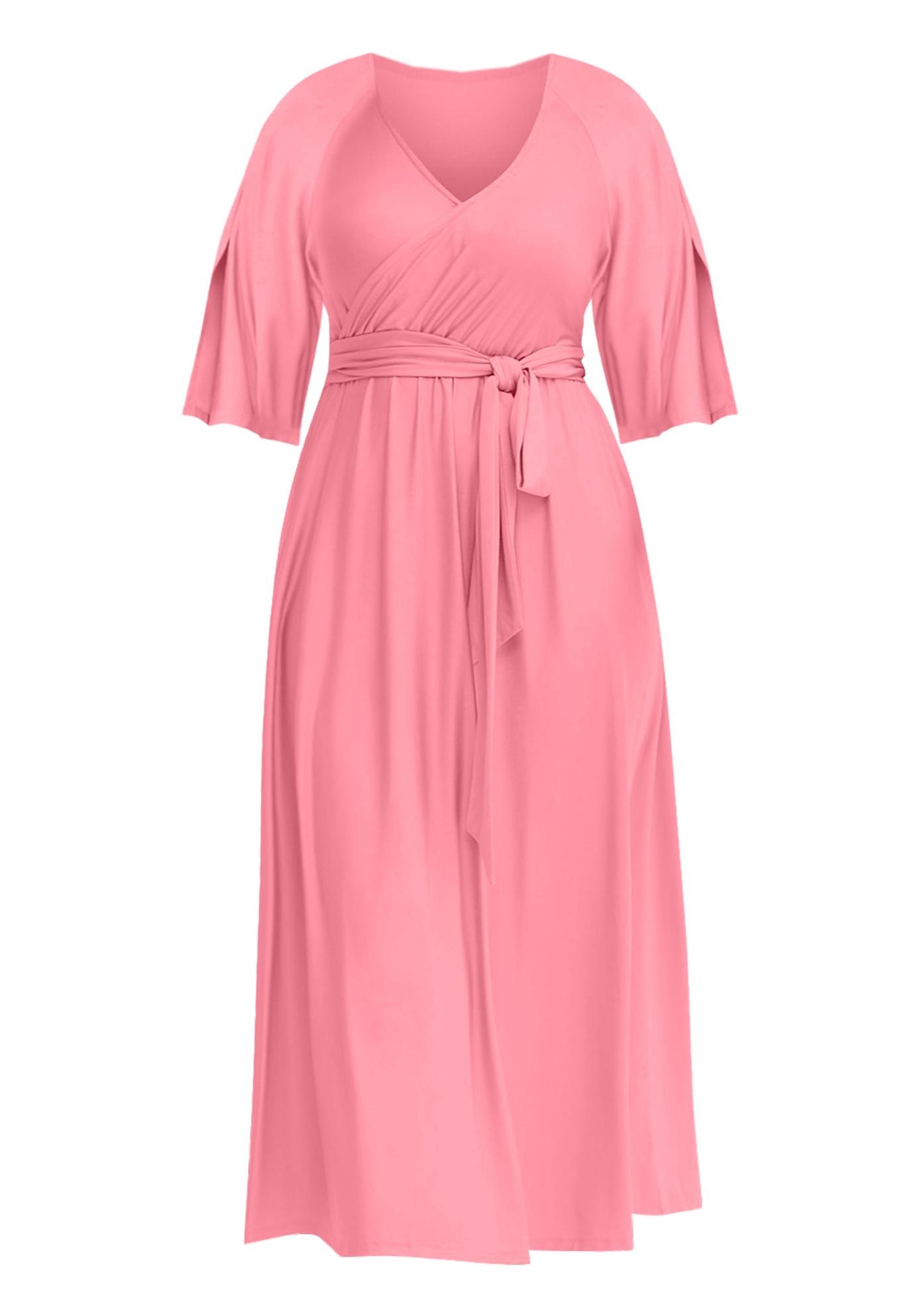 Knit Midi Dress With Surplice Neckline & Waist Tie | ellos
