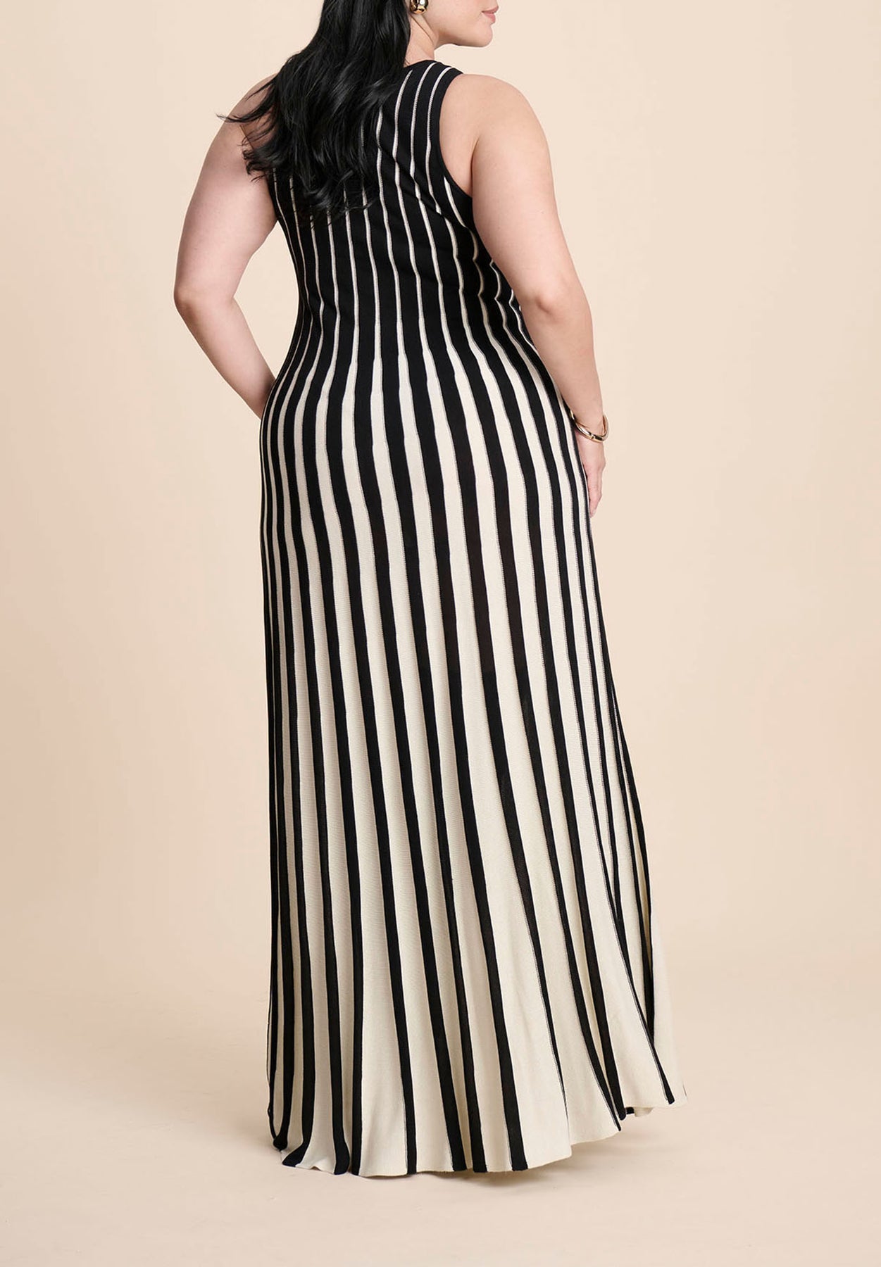 Make a striking impression in this two-tone sweater maxi dress designed for clean, elongated lines. A close fit and floor length deliver modern, minimalist sophistication.