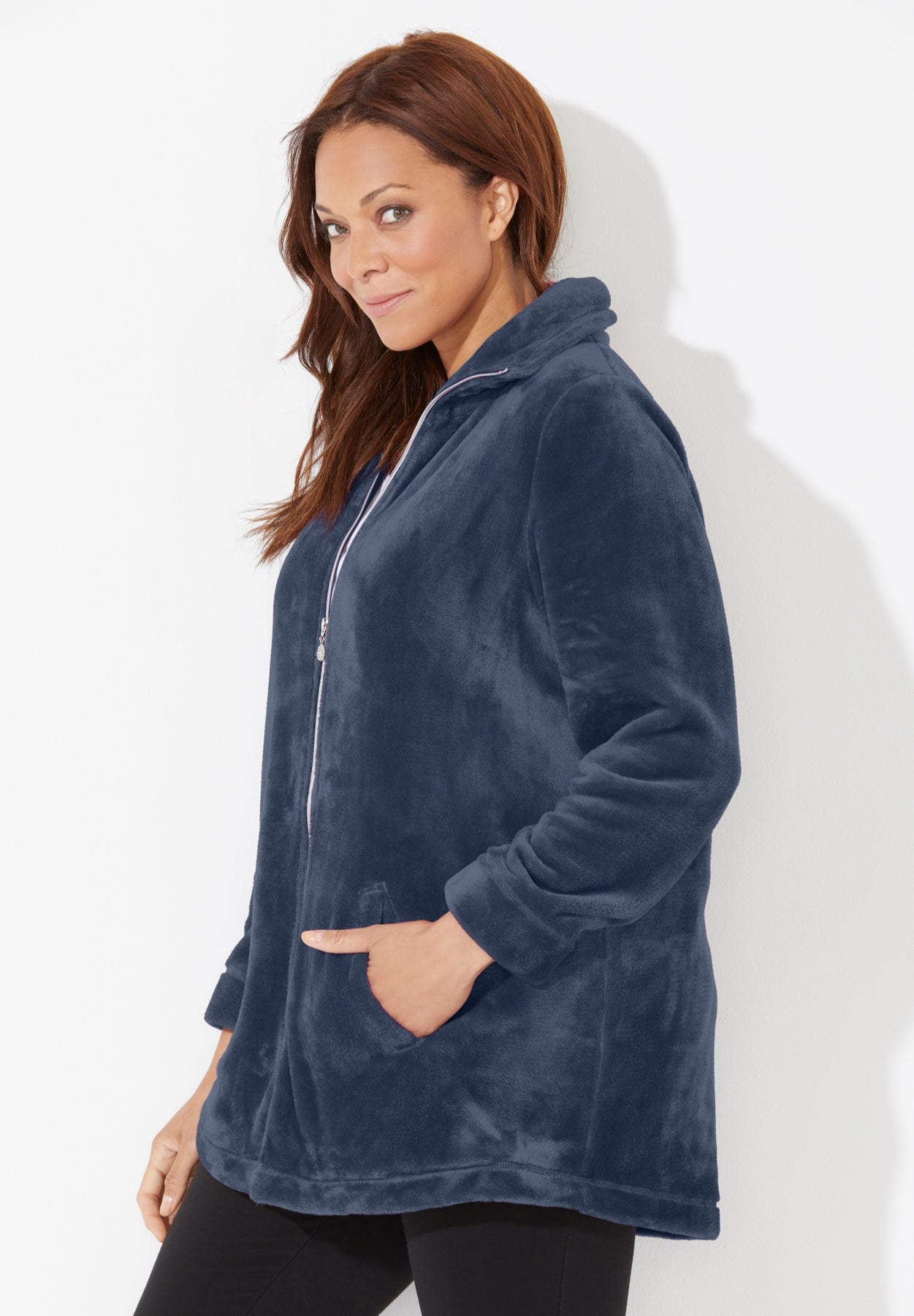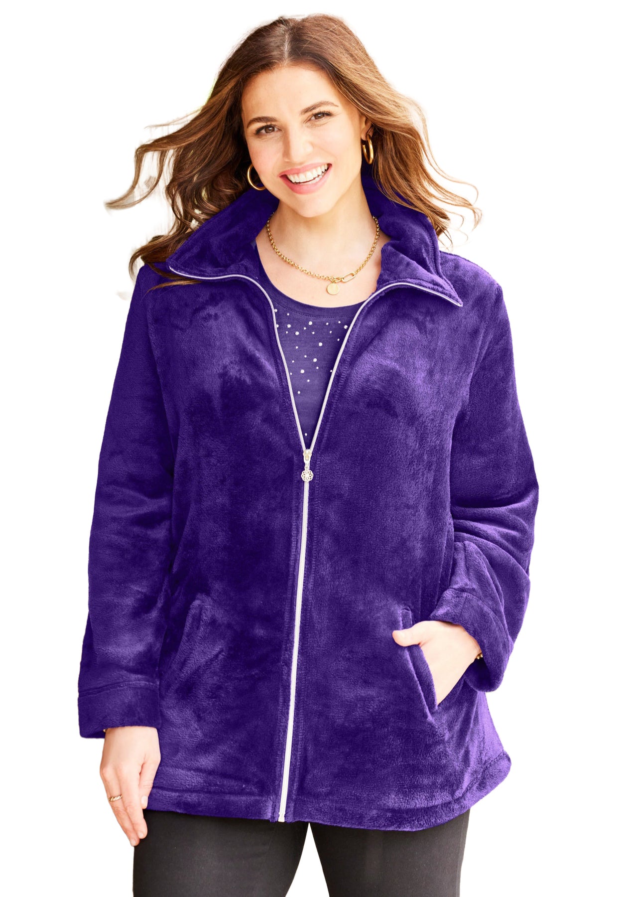 Velvety soft, with a deep plush (almost furry) texture, this is the jacket you'll reach for again and again. With its stand-up collar, cozy front slant pockets and front zip to chase away the chill, this might just become your cold-weather favorite.
