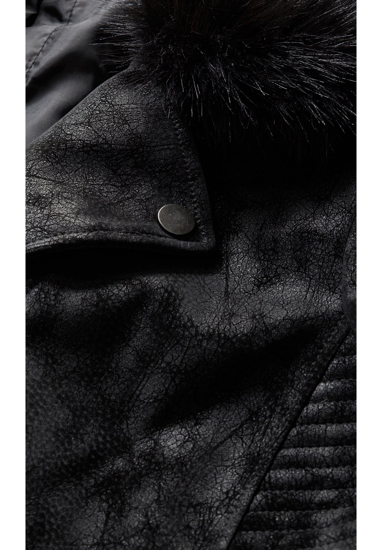 Main Coating: 100% Polyurethane. Base, Lining, Padding & Faux Fur Collar: 100% Polyester.