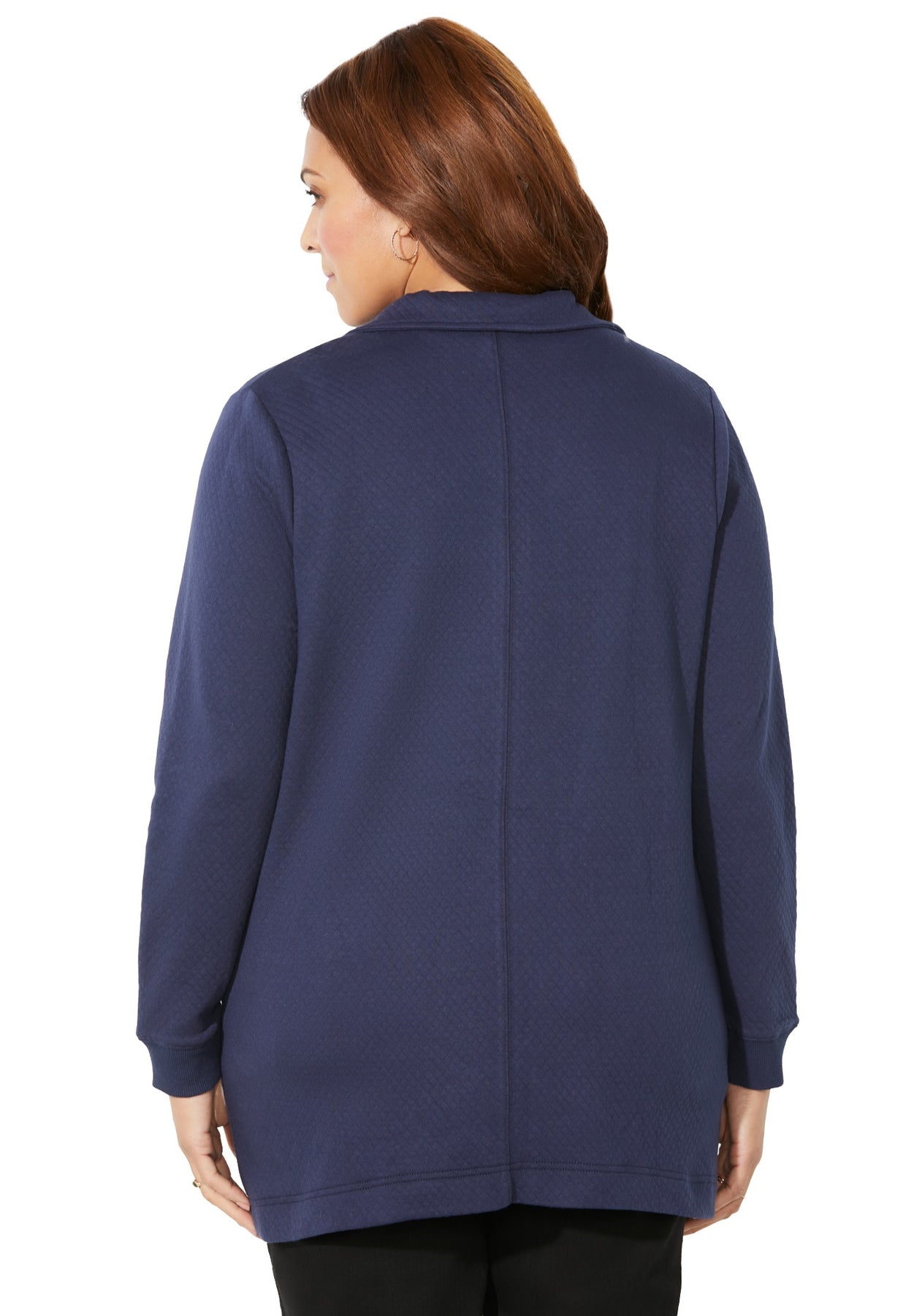 As cozy as your favorite sweatshirt but with a more refined, put-together look. Our Quilted Knit Jacket is lightweight and oh-so-comfortable with zip front, slanted front pockets and foldover collar. Wear with your favorite Catherines jeans or pants.