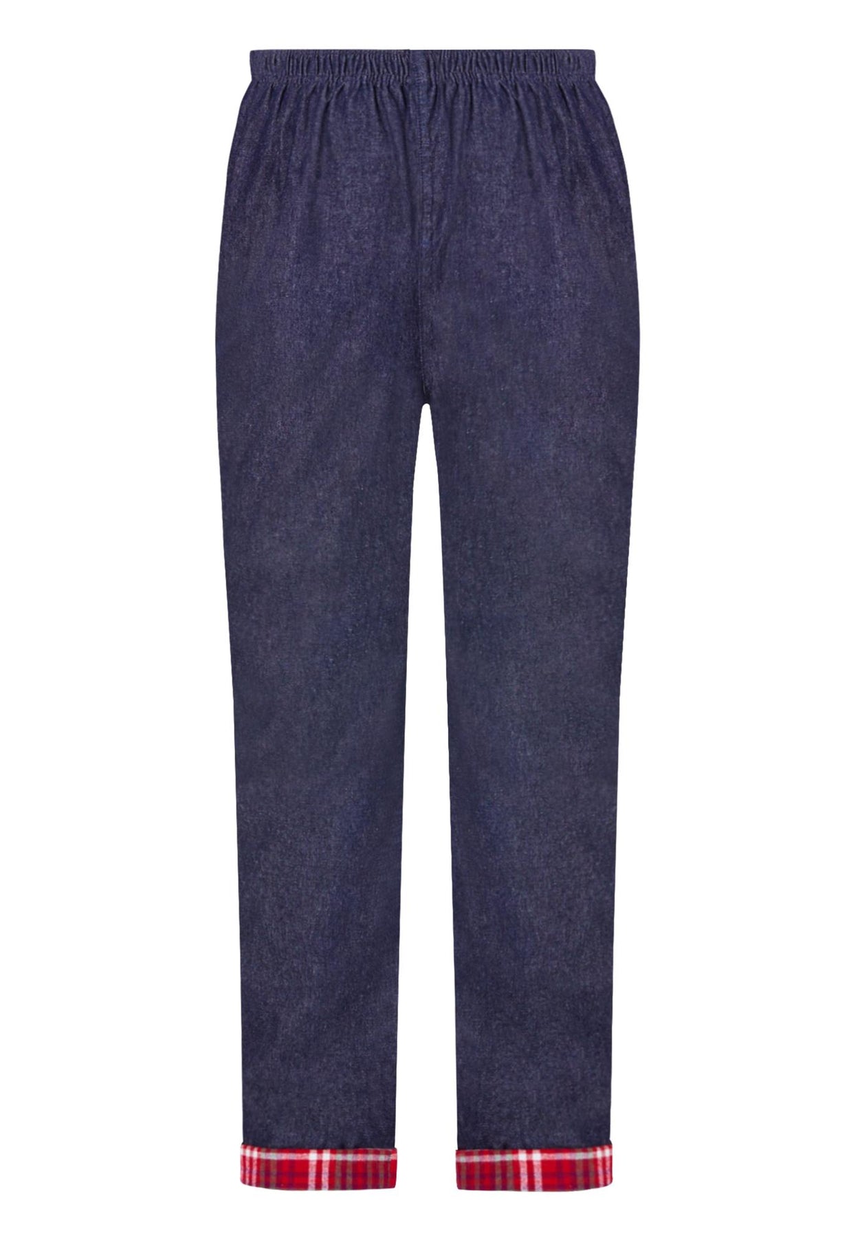 Elastic-Waist Cotton Straight Leg Denim Pant with Flannel Lining
