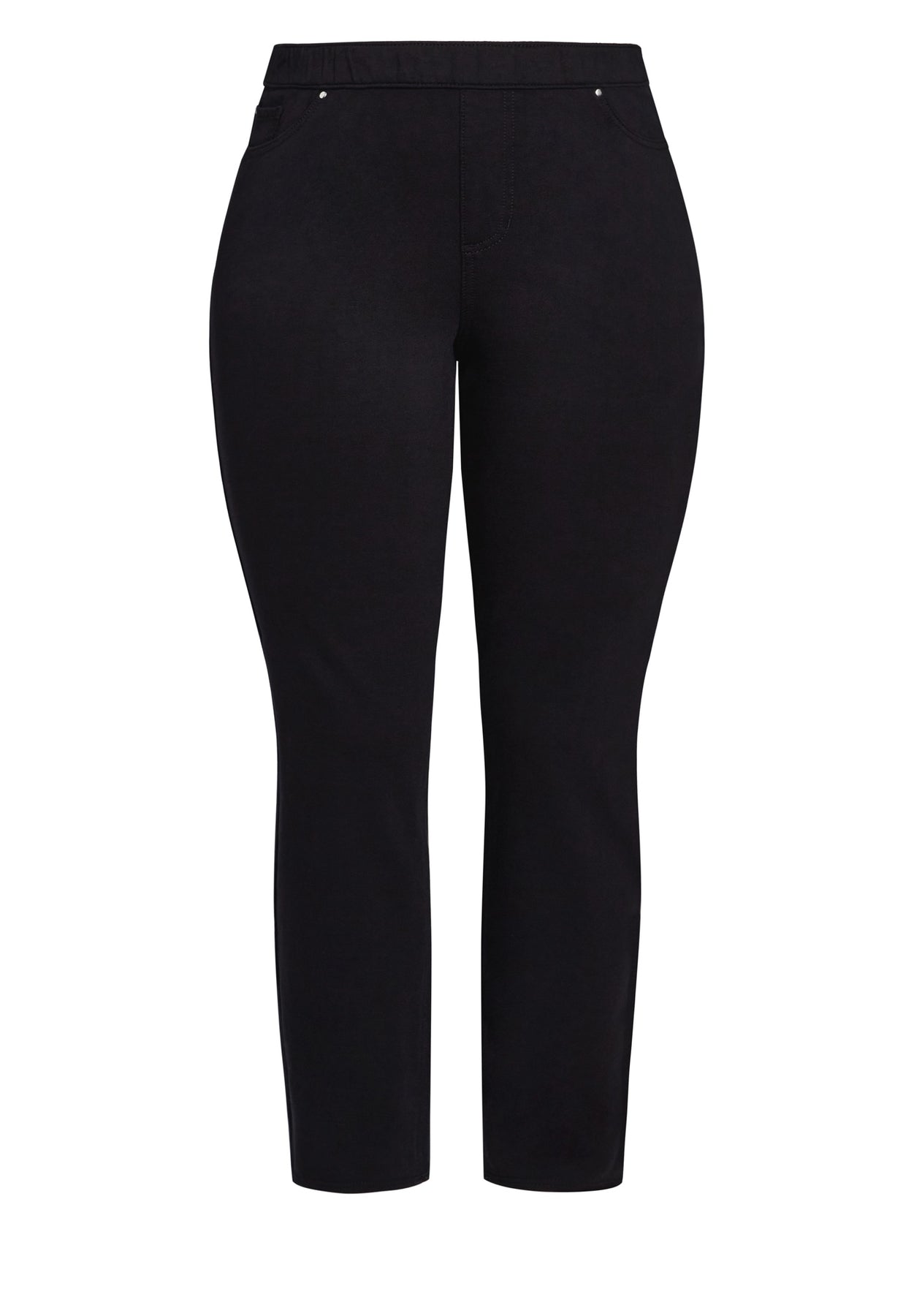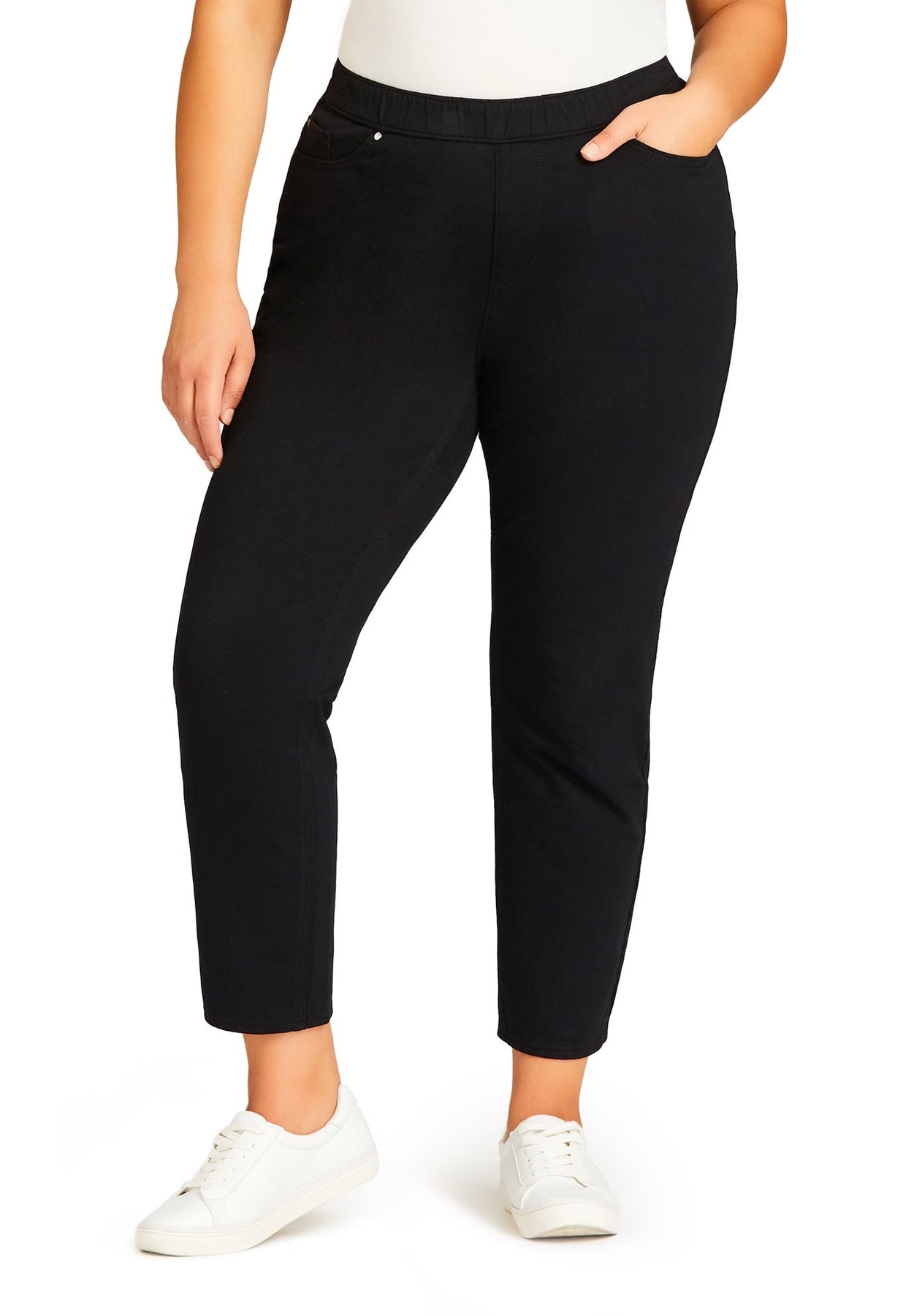 Bring a new level of comfort to jeans with the Tapered Knit Pull On Jean. A tapered slim leg silhouette flatters your curves in this stretch fabrication, pulling on with ease and support.