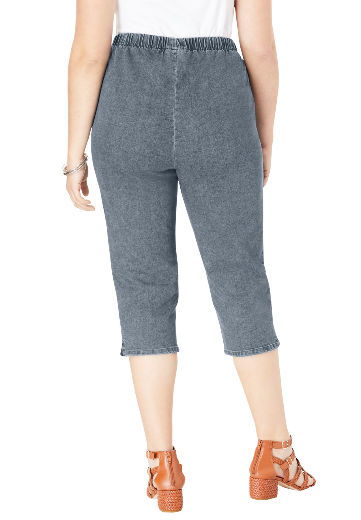 These capri jeans offer coverage and breathability with a sleek, streamlined fit. Dress them down with a breezy blouse and flats, or add a tailored jacket and mules for an elevated daytime look. No pockets for a smooth look. Side slits.