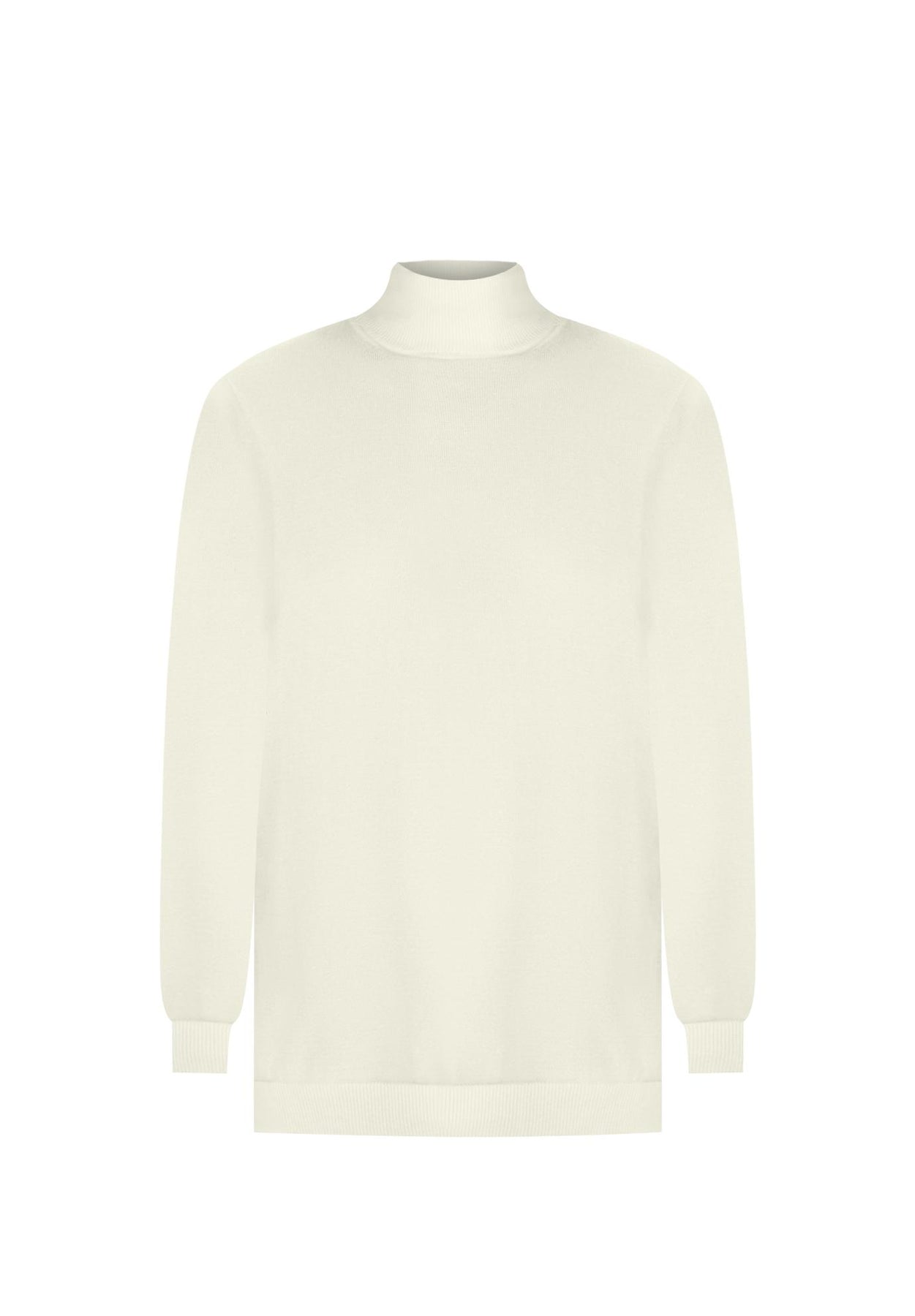 Pullover cotton turtleneck sweater with ribbed collar, cuffs and hem.
