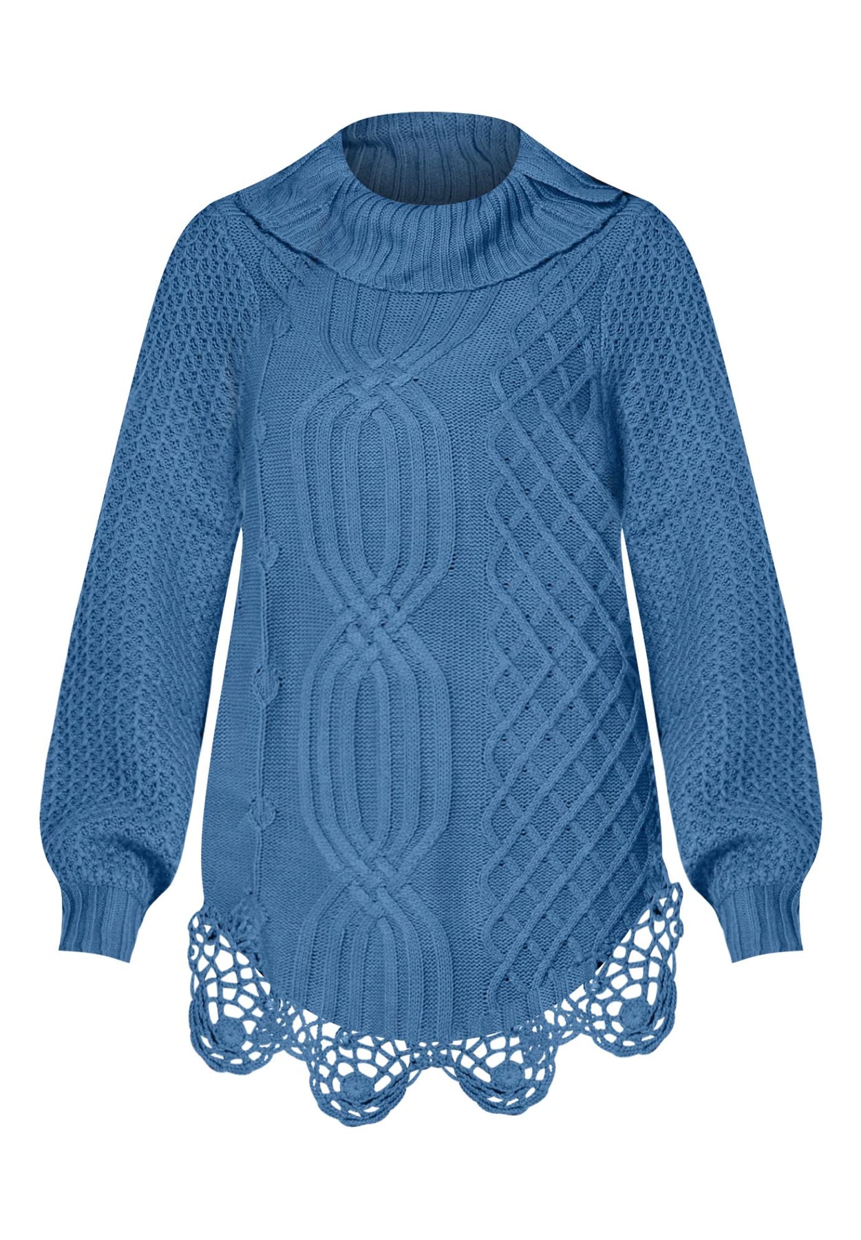 Look chic while staying warm in this cozy cable knit sweater. Detailed with long poet sleeves, it's fitted with functional side buttons on the cowl neck that allow you to adjust the neckline to your preference.