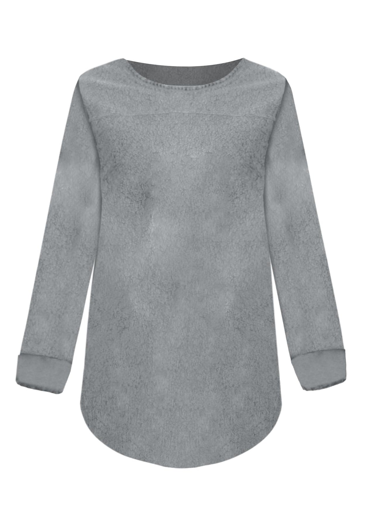 This supersoft and cozy tunic is one you'll reach for all season. Detailed with feminine touches like a ruffled neckline and cuffs.