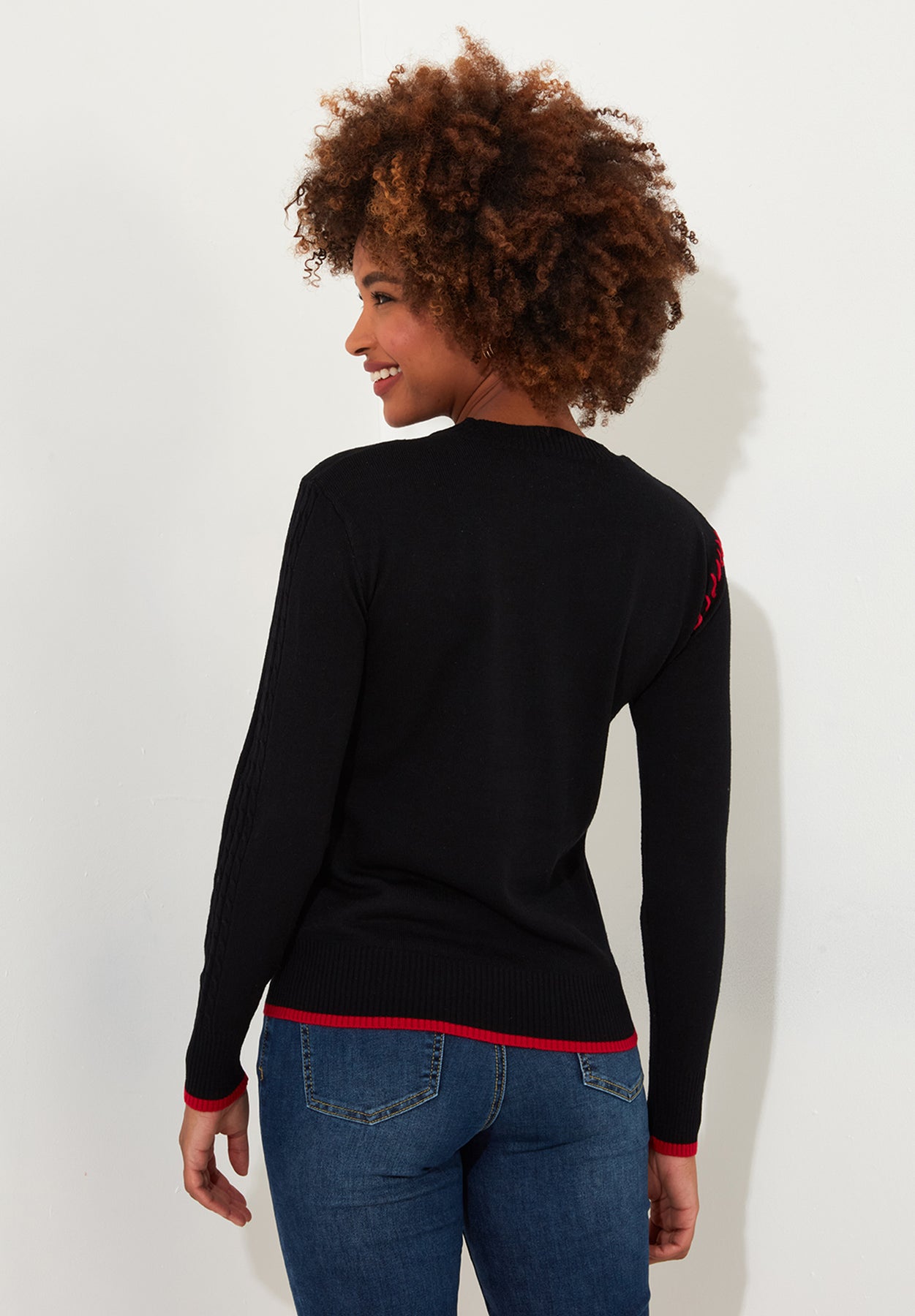 - Contrast tipping on hem and sleeves