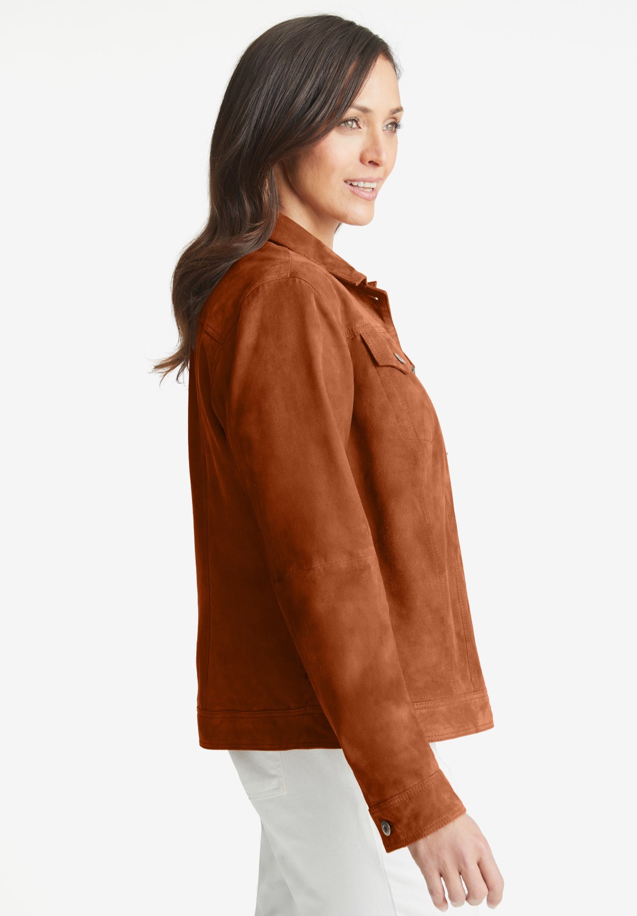 Your favorite jean jacket gets a makeover in luxurious suede. All the classic details: shirt collar neckline, flap chest pockets, side-seam pockets and button cuffs. It’s a silhouette made to layer; wear it over your favorite tops and straight leg jeans for a look that’s classically cool.
