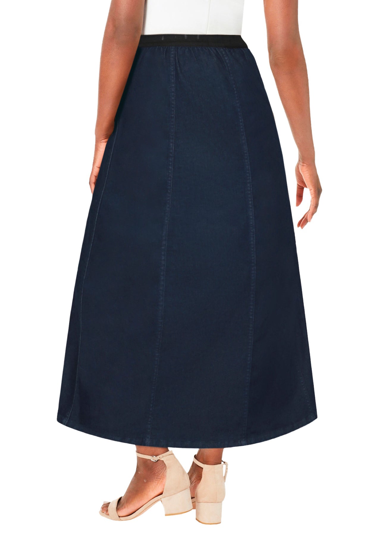 Meet our highest-stretch denim, fashioned into a classic denim skirt with modern vertical seaming that gives it a unique, refined fit. The super-flex denim moves with you throughout the day while retaining its sleek shape.