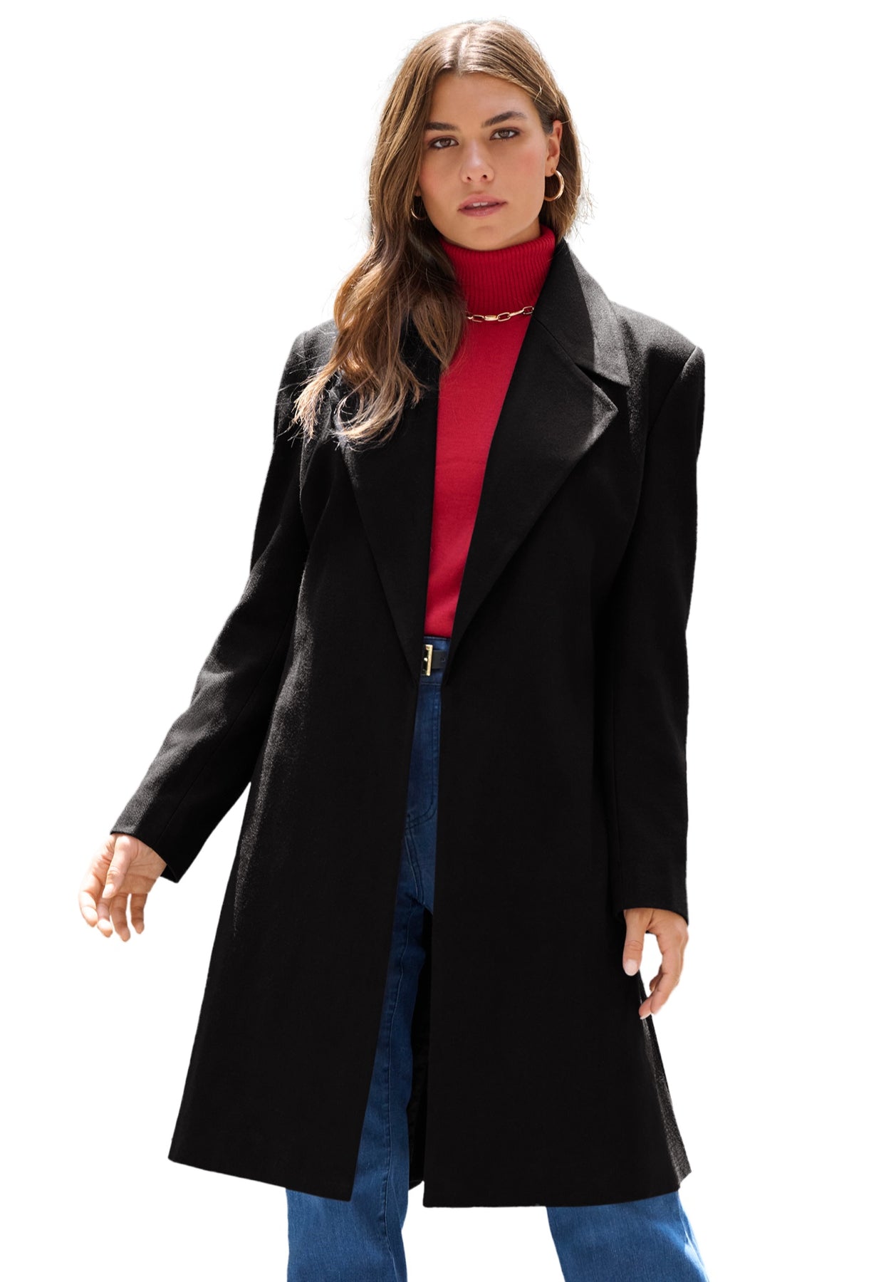 Meet your new cold-weather essential with this knee-length wool blend coat designed with a flattering A-line silhouette and sash tie that nips you in at the waist for a defined shape. With a sharp notch collar and hidden side pockets, it's tailored sophistication made effortless.