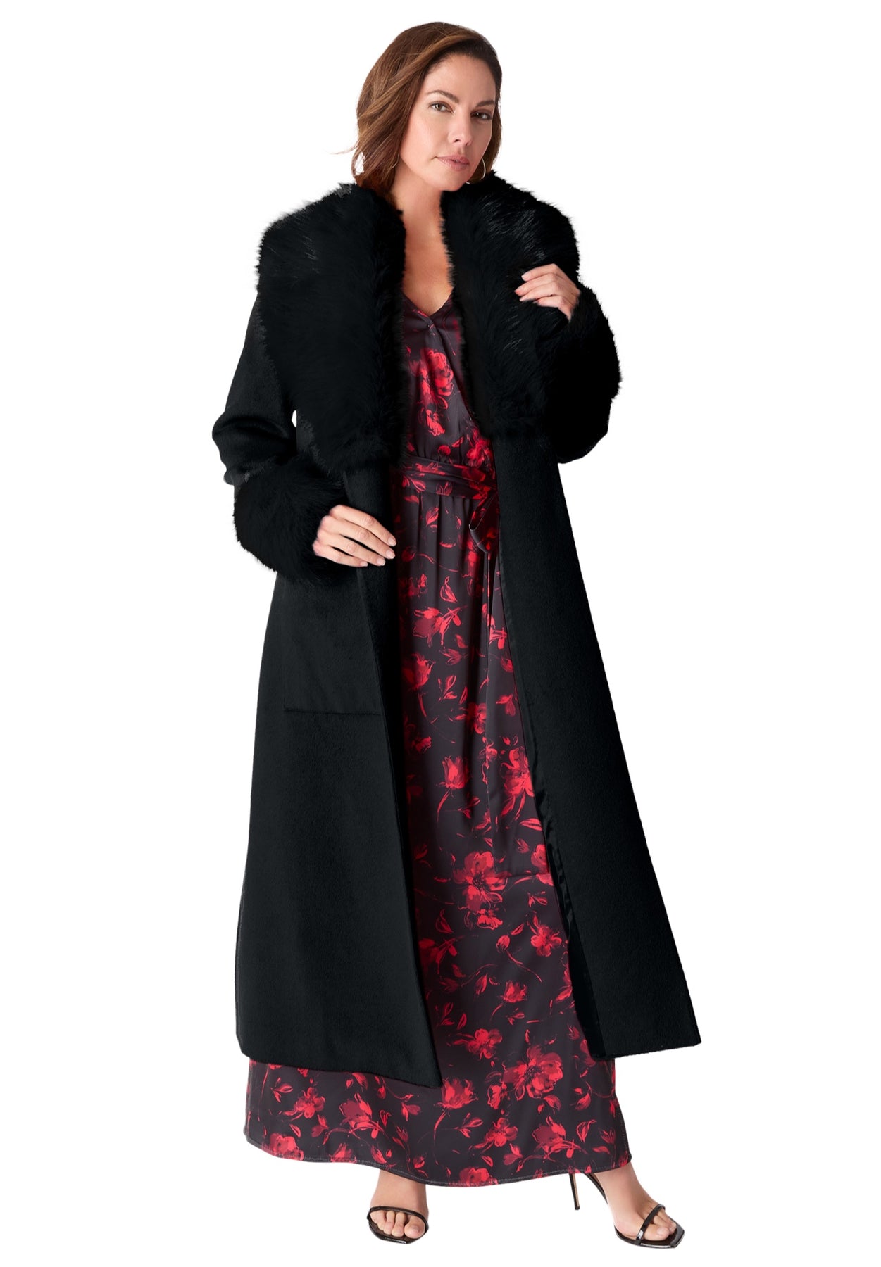 Plus Size Wool Blend Coat with Faux Fur Trim