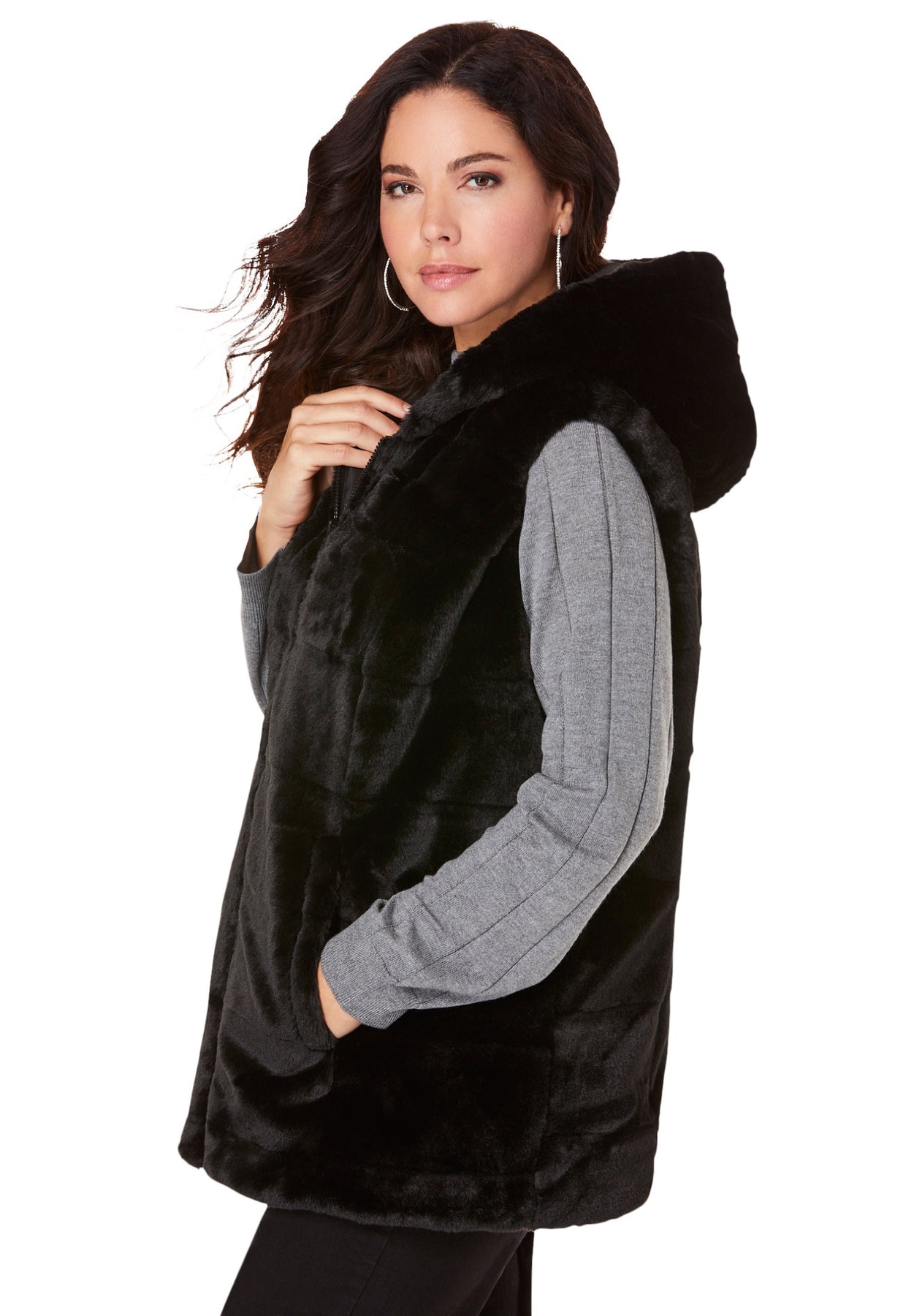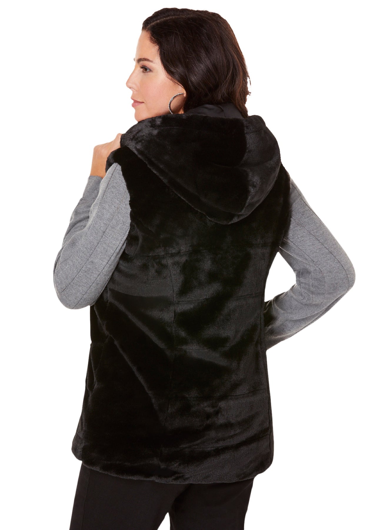 This vest is what you need for layering with style, with a hood to keep you warm and side pockets for stashing essentials. Reverse it from channeled faux fur to a puffer to elevate your look no matter the weather. Front zip.