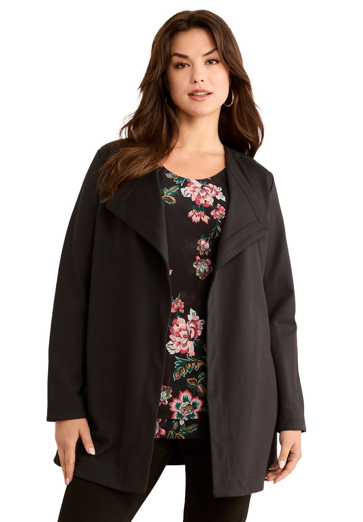 Plus Size Ultimate Ponte Drape Collar Jacket