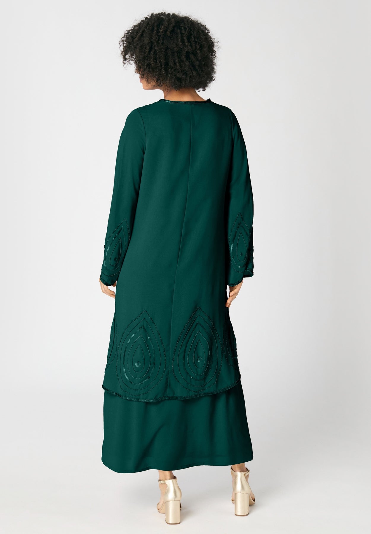 Plus-Size 2 piece Long Sleeve Beaded Georgette Gown Set with Detachable Jacket | Roaman&