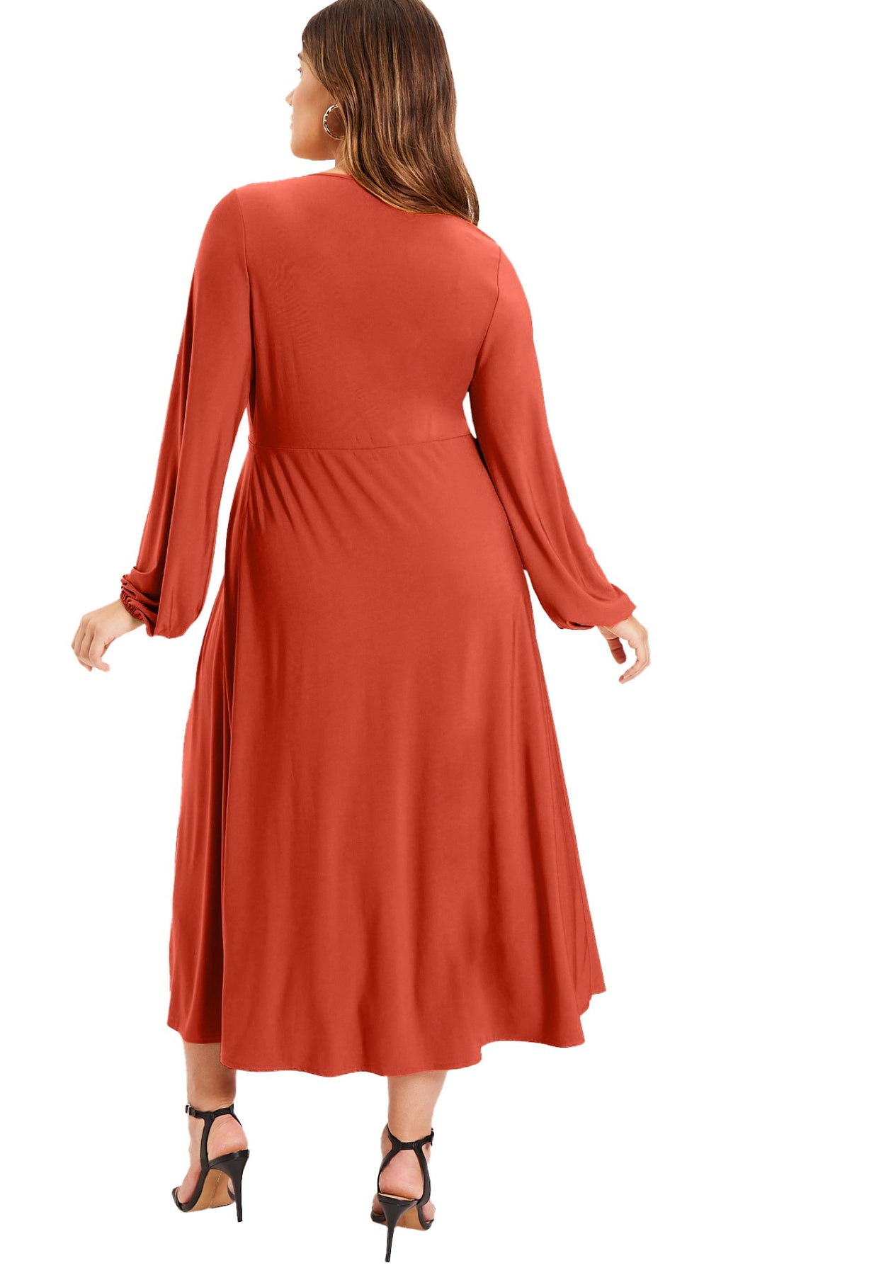 A silhouette that moves with quiet command, this softly structured dress is crafted from a fluid spandex knit—shaped by a plunging V-neckline and long, gathered sleeves that billow with graceful ease. Ruching beneath the bust defines the empire waist, lending delicate shape without restriction. Feminine yet grounded, it’s a lesson in bold serenity.
