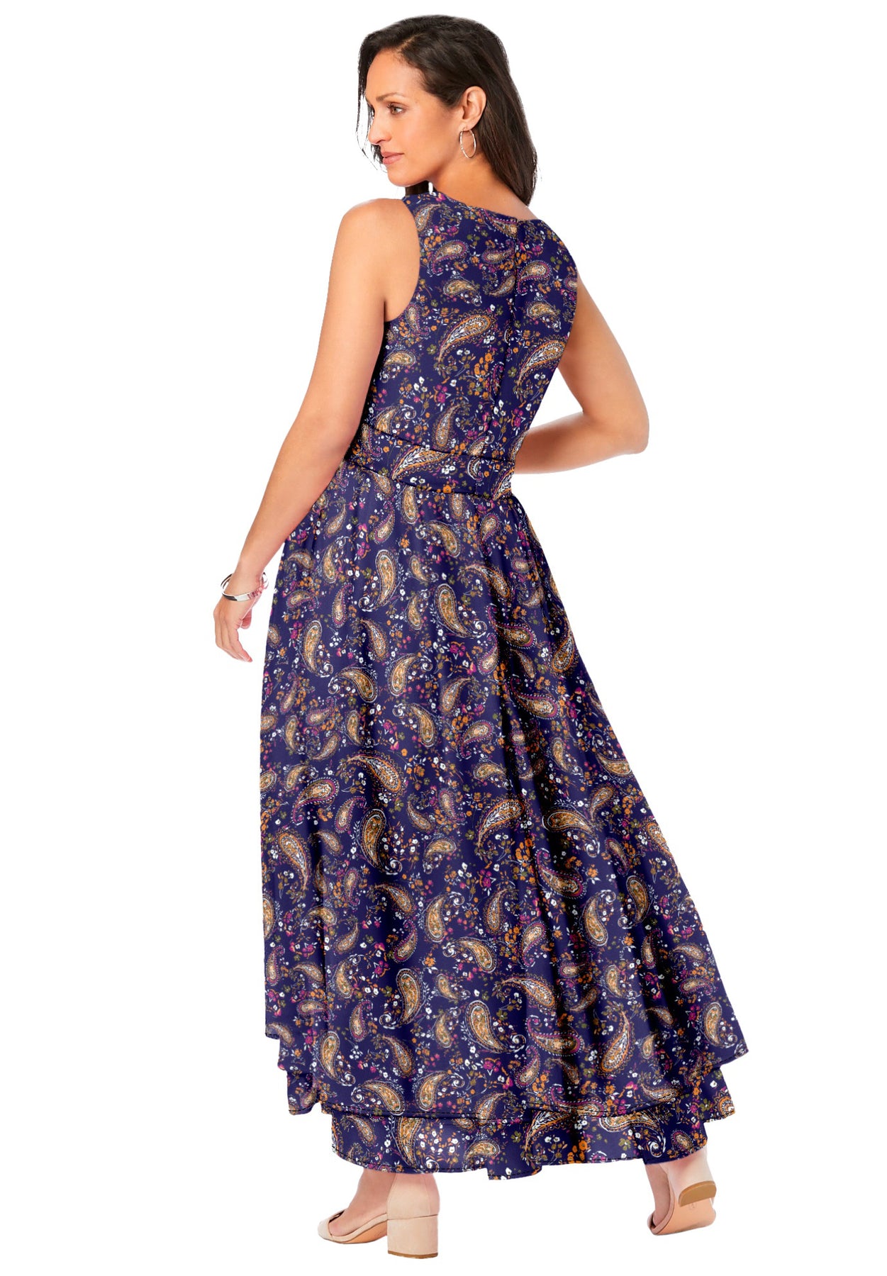 Instantly update your wardrobe with the Jessica London women's plus size Georgette Flyaway Maxi Dress. The fit & flare silhouette offers figure flattering style and is complete with an empire waist that complements your curves.