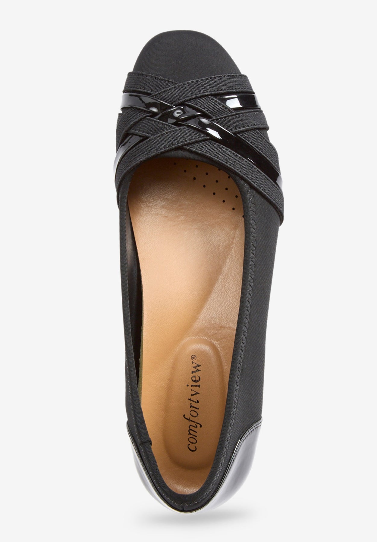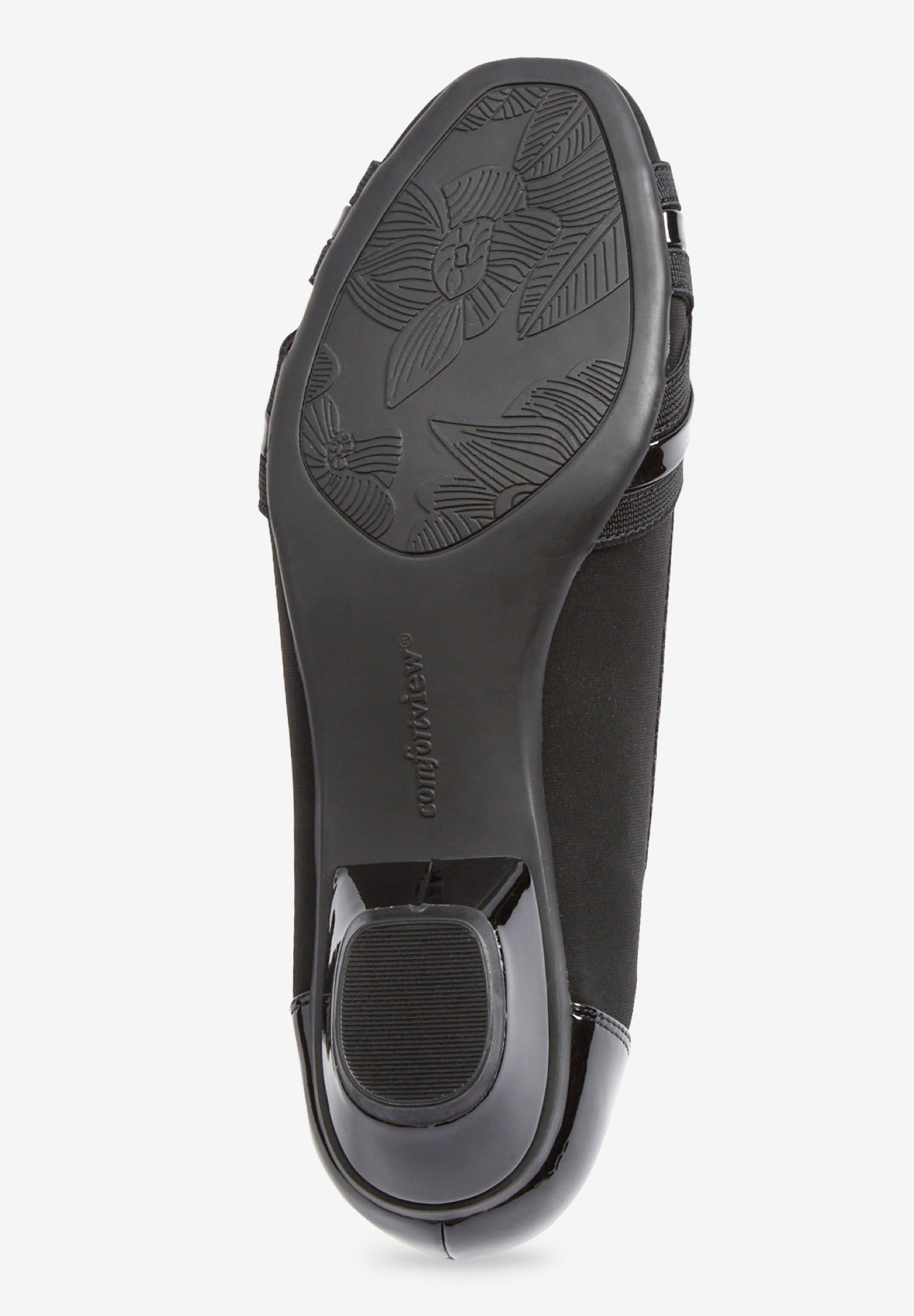 Step into elegance in this sophisticated pump detailed with fabric and patent leather. So comfortable and chic, you’ll love how they look and feel.