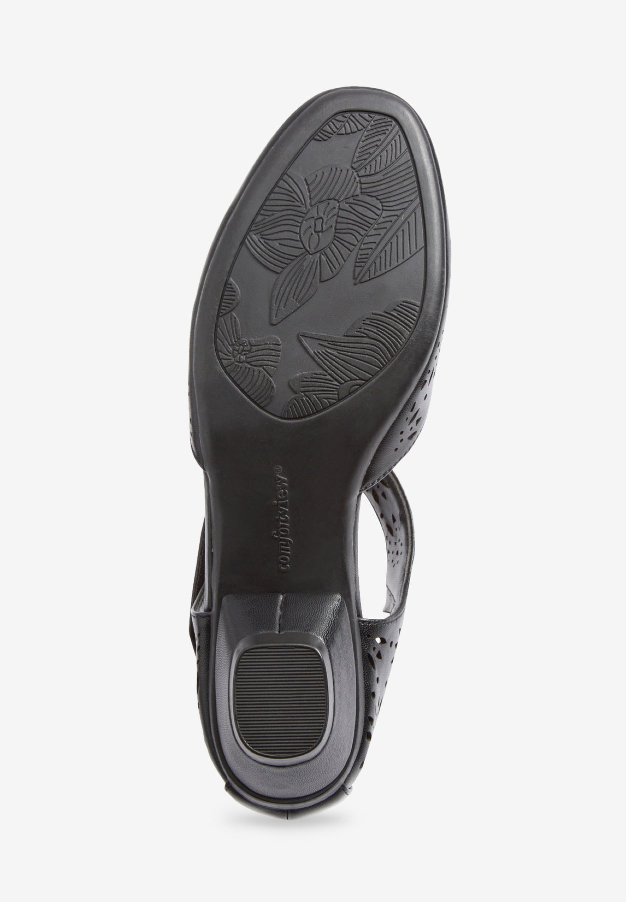 Get ready to step into style! With its adjustable, self-adhesive strap and detailed leather-like upper, this pump will be your new go-to.