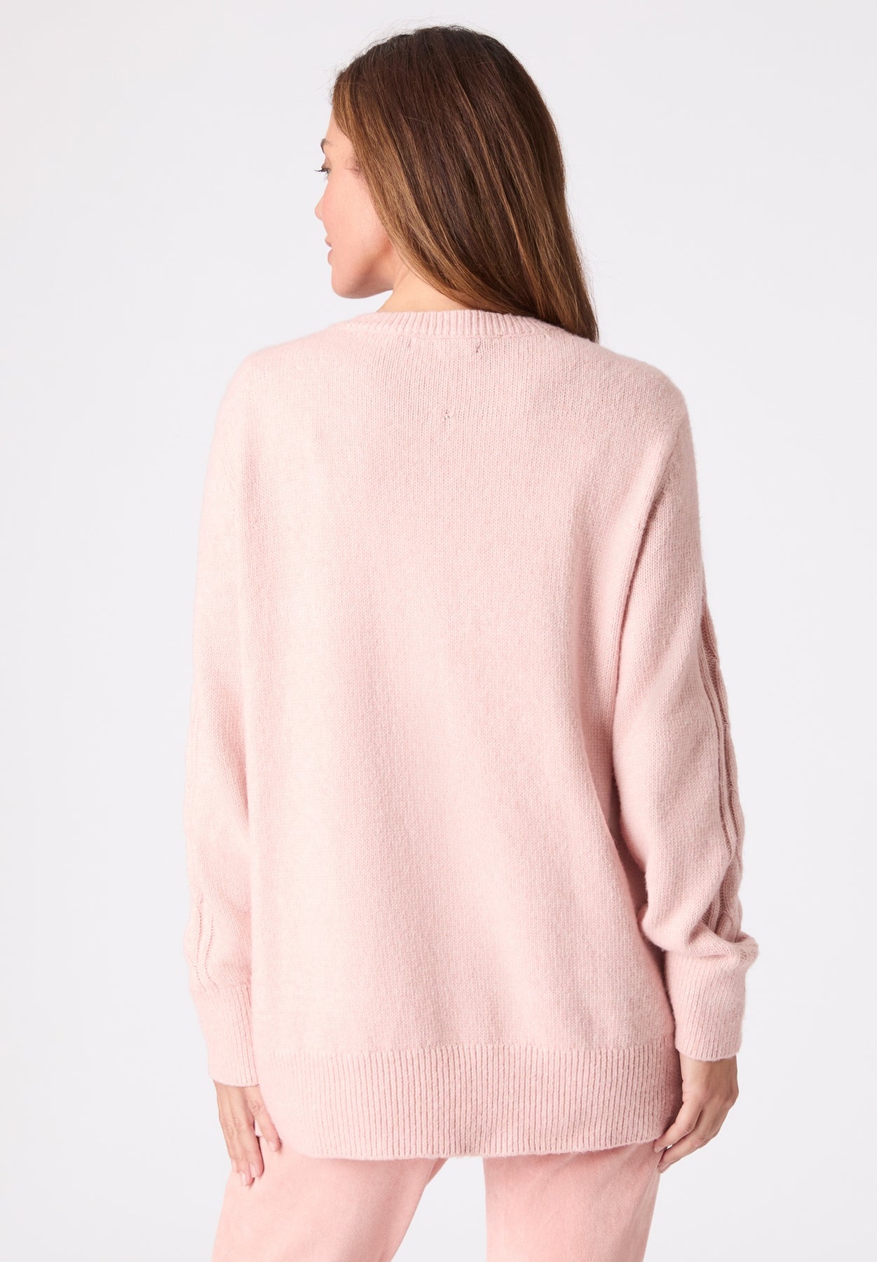 The classic cable sweater gets a refresh with variegated cable stitching and a relaxed fit that flatters every curve. The soft crewneck and subtle drop shoulder create an easy, casual look you'll reach for again and again with jeans or a midi skirt. Side slit. Rib trim.