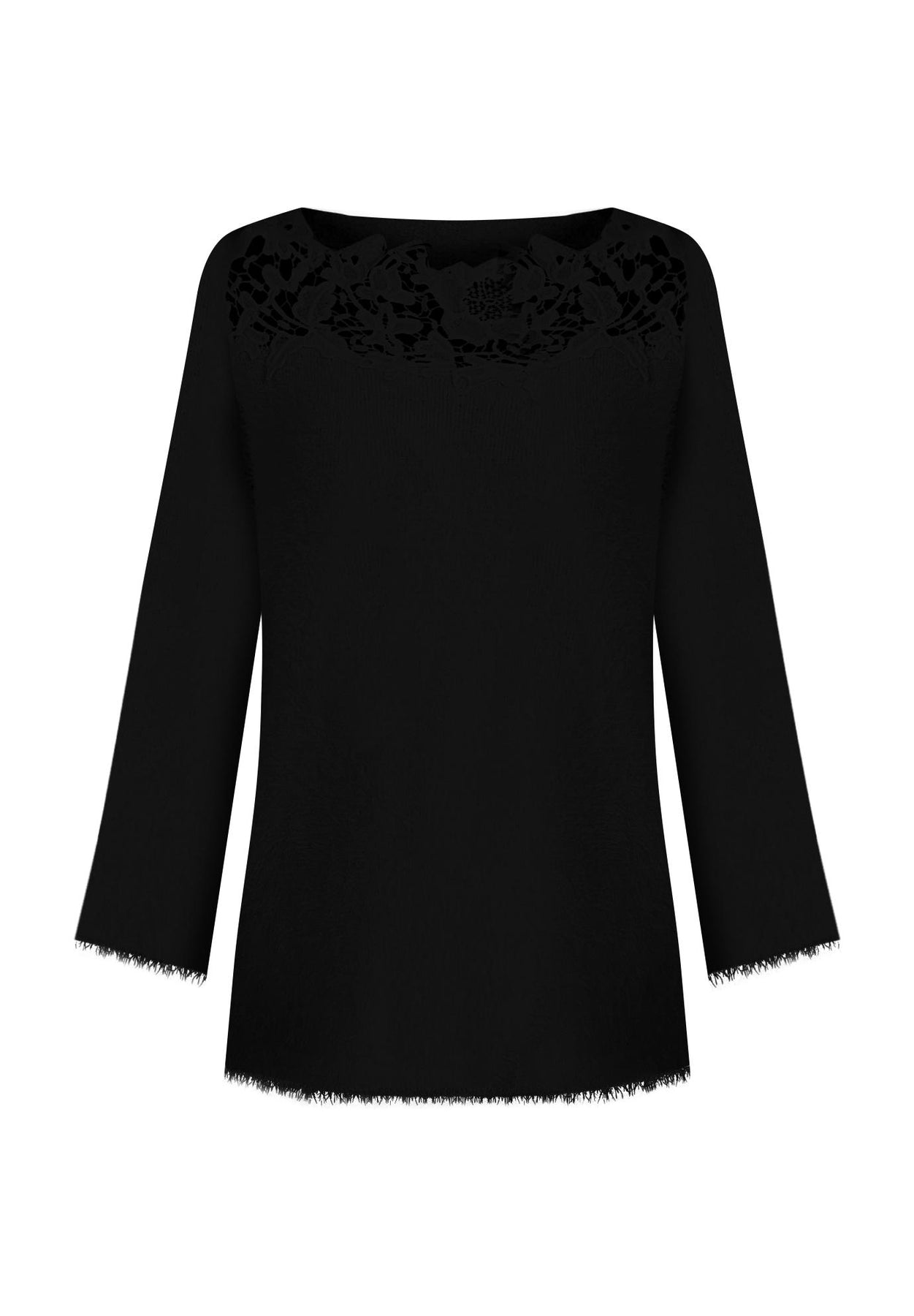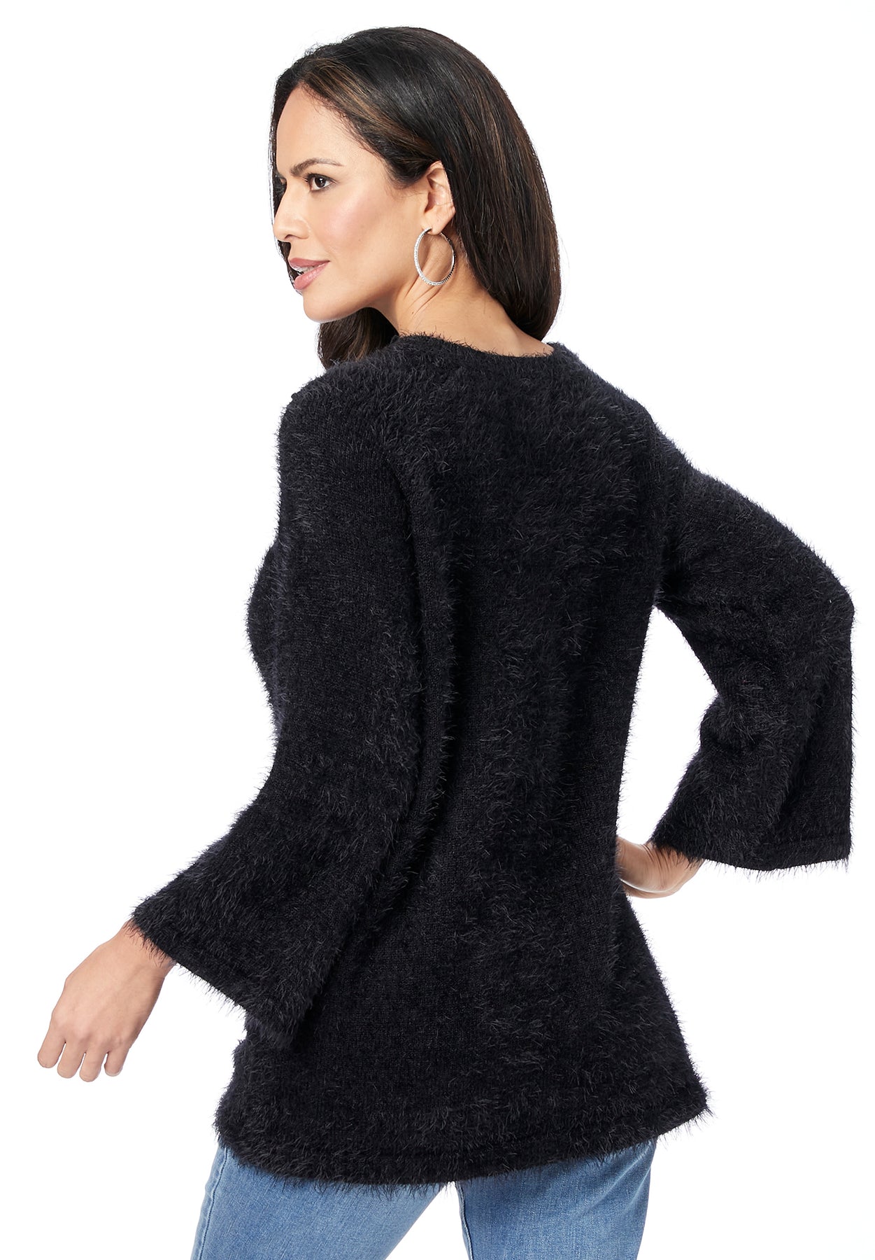 Appliqué adds playful texture to this eyelash boatneck sweater. Long bell sleeves.