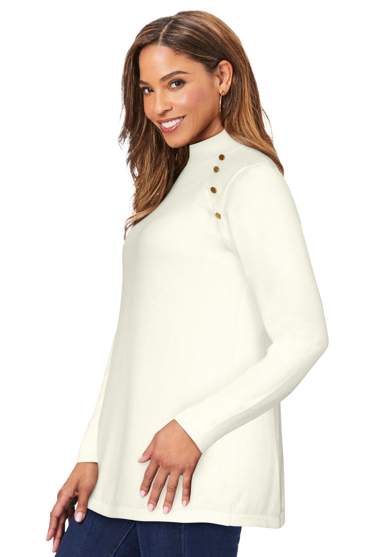 Gold Button Mockneck Sweater