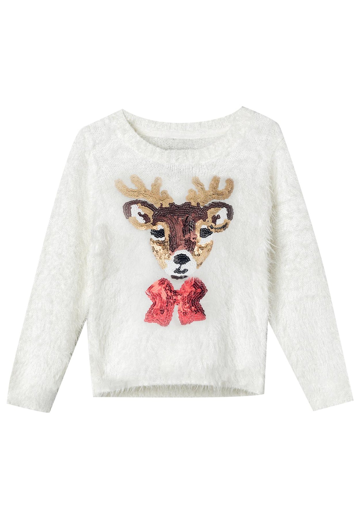 A sequin reindeer motif puts you in festive fashion, perfect for holiday celebrations or simply a chic way to get into the holiday spirit. Pair it with leather or satin pants to go upscale; wear it with jeans for a casual look.
