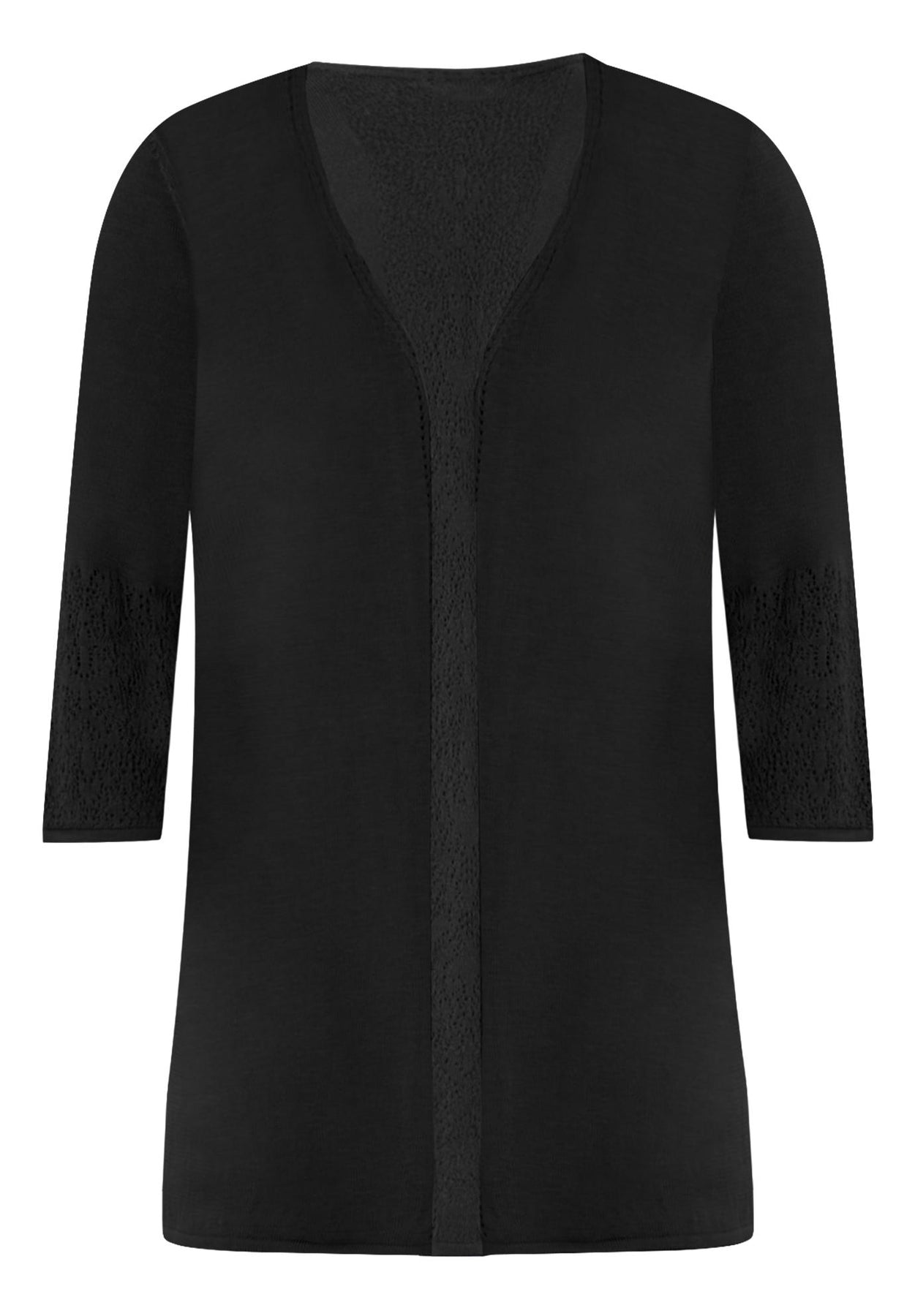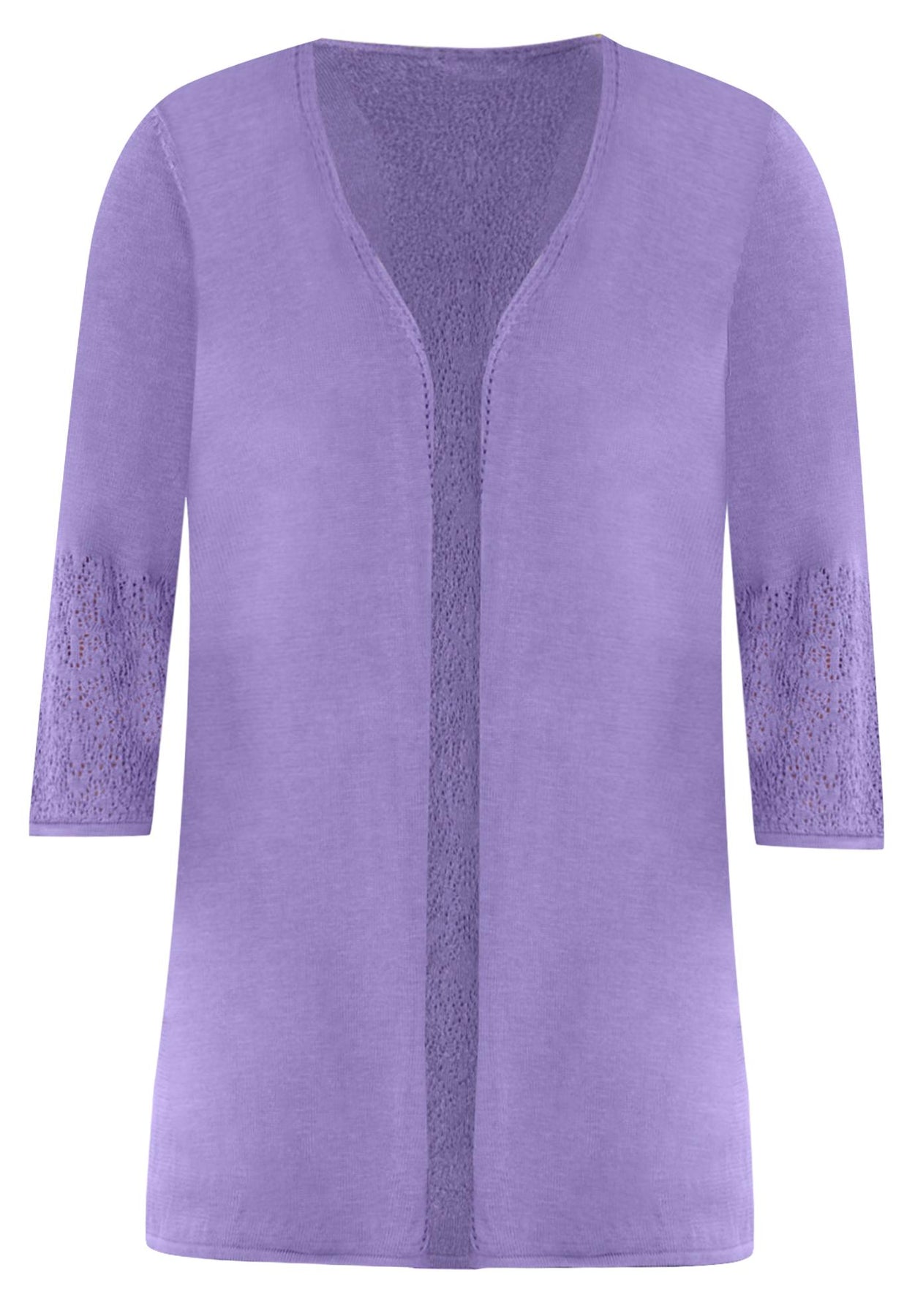This cardigan has all-over mesh stitching and pointelle trimming that moves the style needle into beautifully elegant new territory. It pairs wonderfully with our Sateen Stretch Pant.