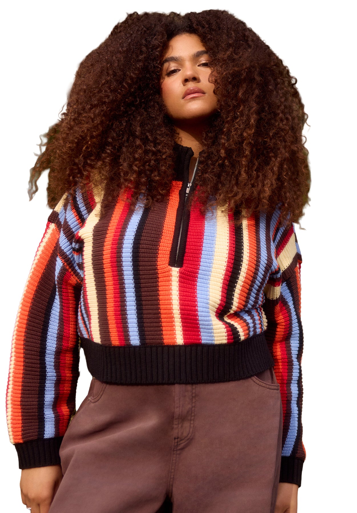 Elevate errands & coffee runs with this striped pullover sweater, colorfully finished with a sporty zip neckline. A relaxed fit and soft knit bring effortless comfort to everyday looks.