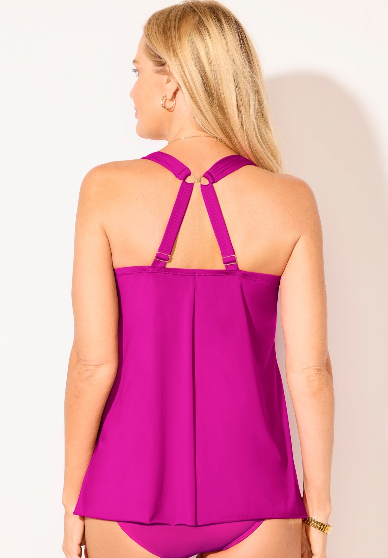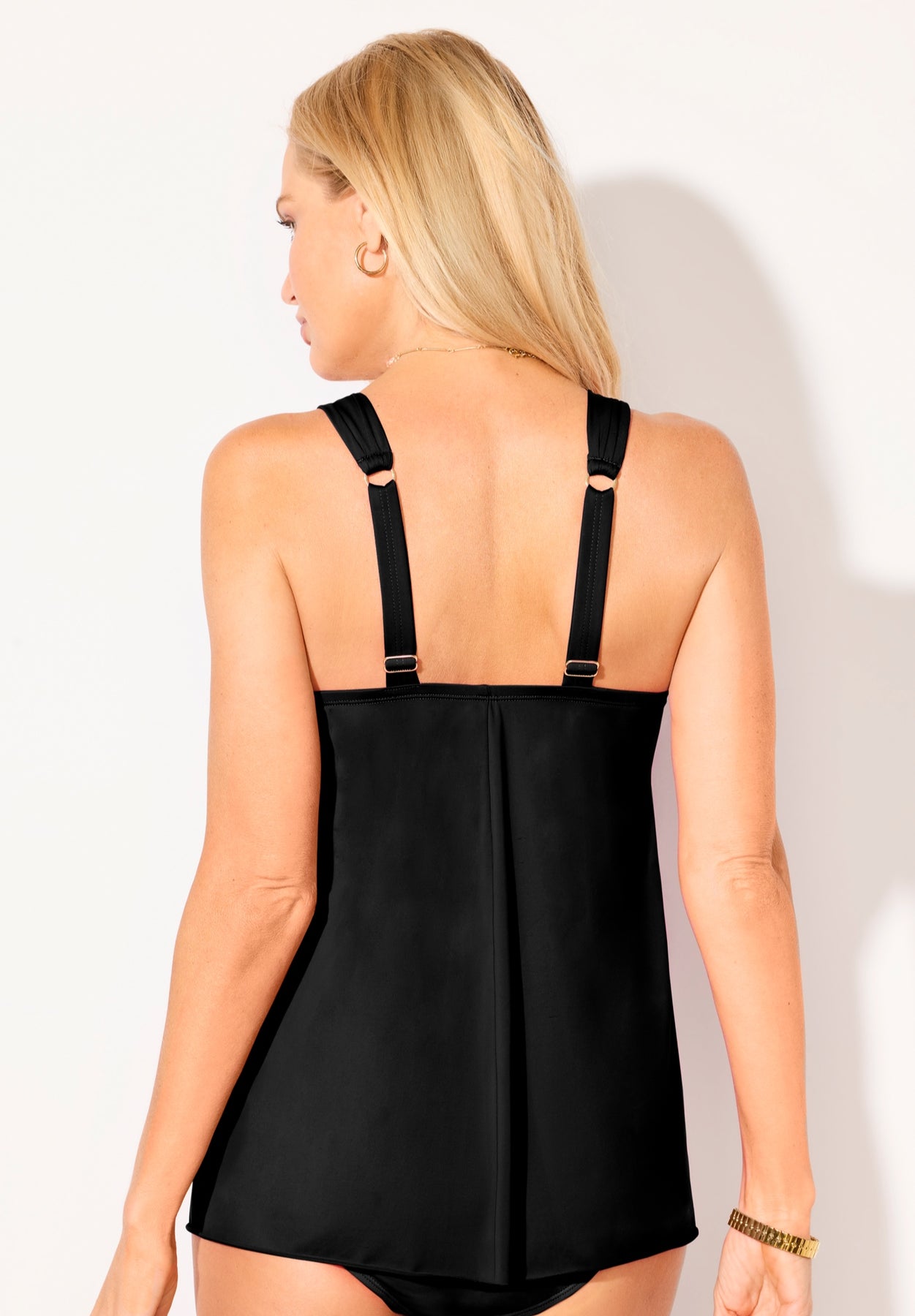 Effortlessly elegant and beautifully supportive, this bra sized tankini top blends the comfort of a flowy silhouette with the structure of a perfectly fitted bra. Molded cups provide lift and shaping, while lightweight shirring and a soft drape overlay at the bust create a flattering, feminine feel. J-hook multiway straps let you customize your style and support, and a secure G-hook closure ensures a confident fit. Finished with a raw-edge hem.