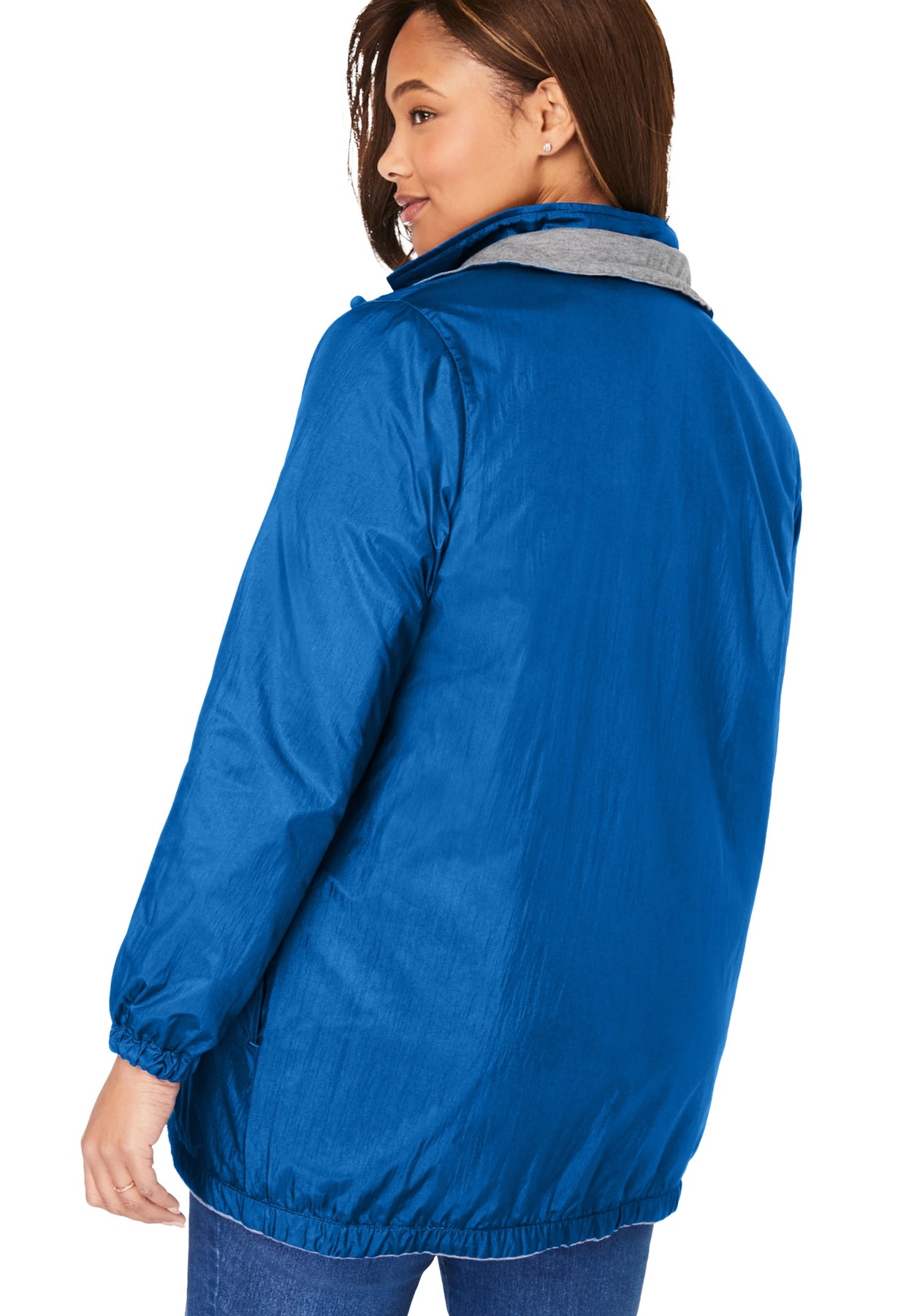 The inside of this reversible jacket is a plush, wonderful fleece that keeps you toasty and warm. The reverse is lightweight, weather-resistant nylon to keep you dry. An elastic hem and cuffs keep your body heat in, and a snap front makes it easy to throw on and take off. Two classic looks in one piece with a relaxed fit you're going to love.