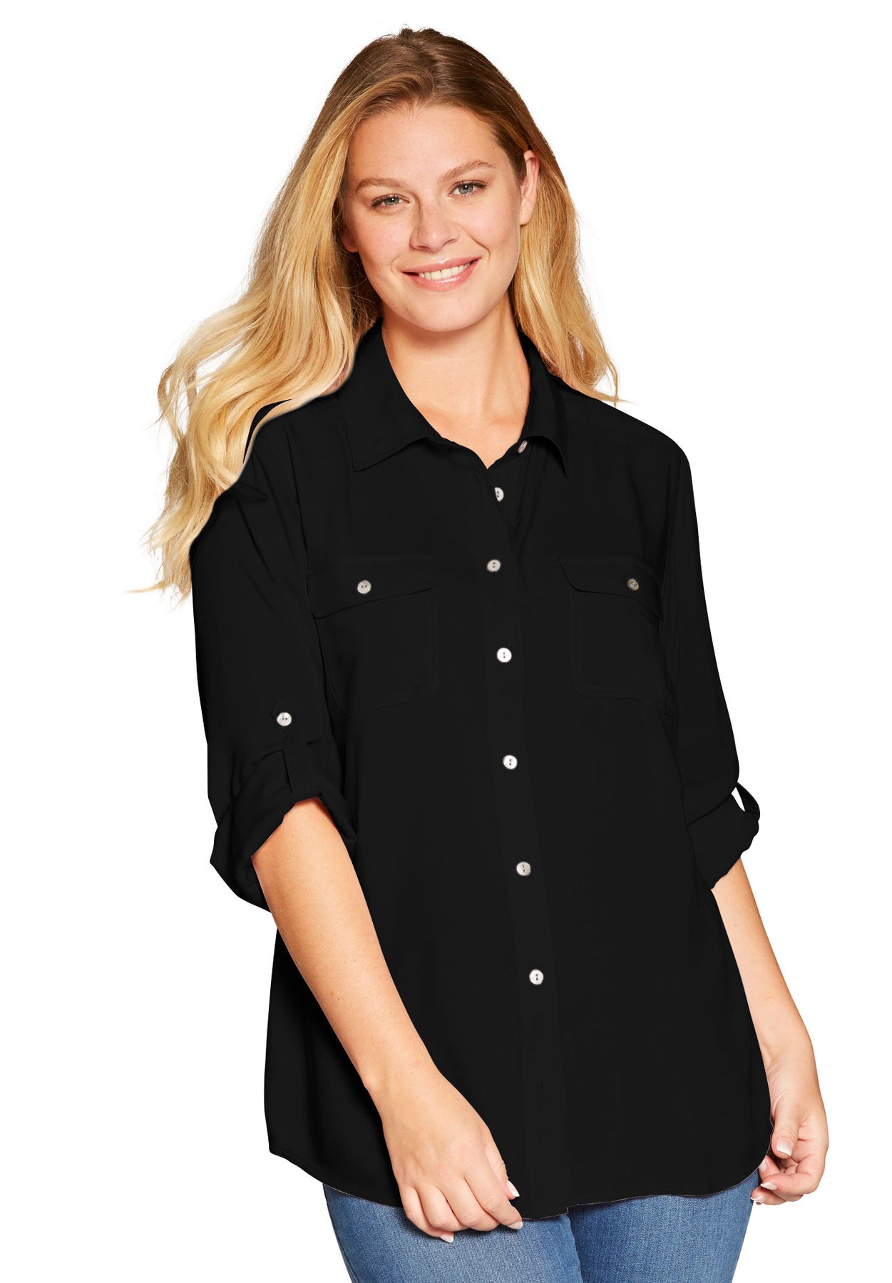 A casual-cool utility shirt is a great addition to your wardrobe. Rolled sleeves with button tabs and buttoned-flap chest pockets add to the casual appeal. We love button front with spread collar that dresses it up enough to wear to work or with your best denim.