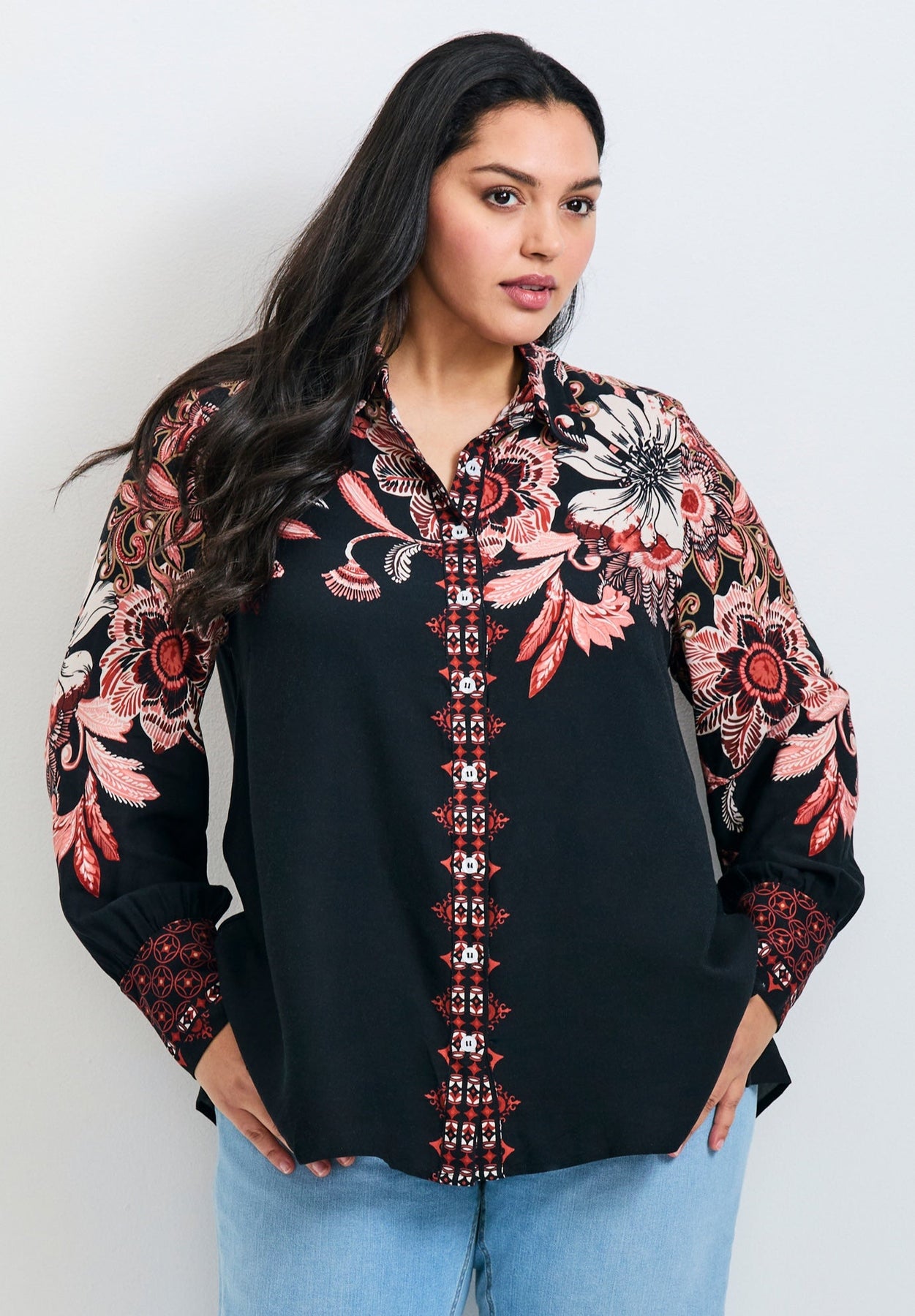 Elevate your style with the La Luna Shirt! This relaxed fit shirt is perfect for those who love to make a statement. With its collared neckline and long cuffed sleeves adorned with button details, you'll stand out in stunning fashion! Made from soft viscose twill with a unique placement print, it offers a textured feel that's as comfortable as it is eye-catching. Button down and get ready to turn heads wherever you go!